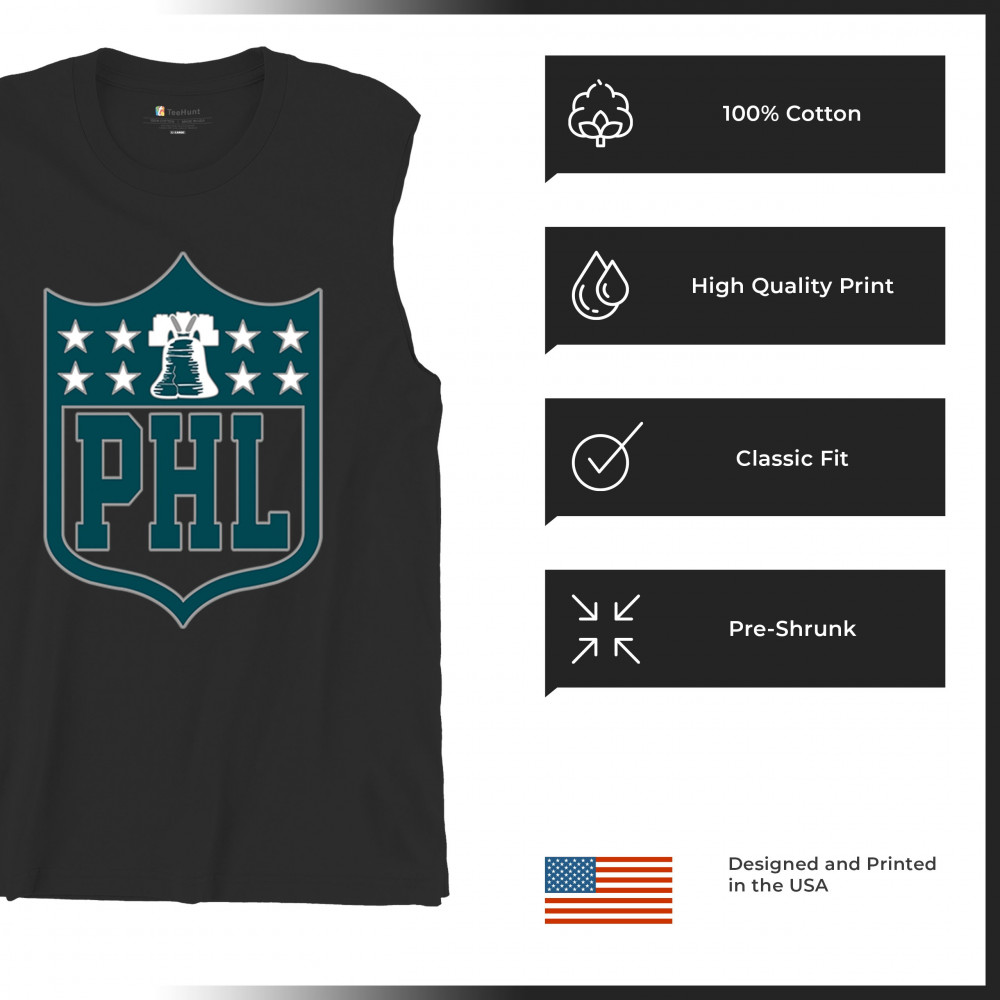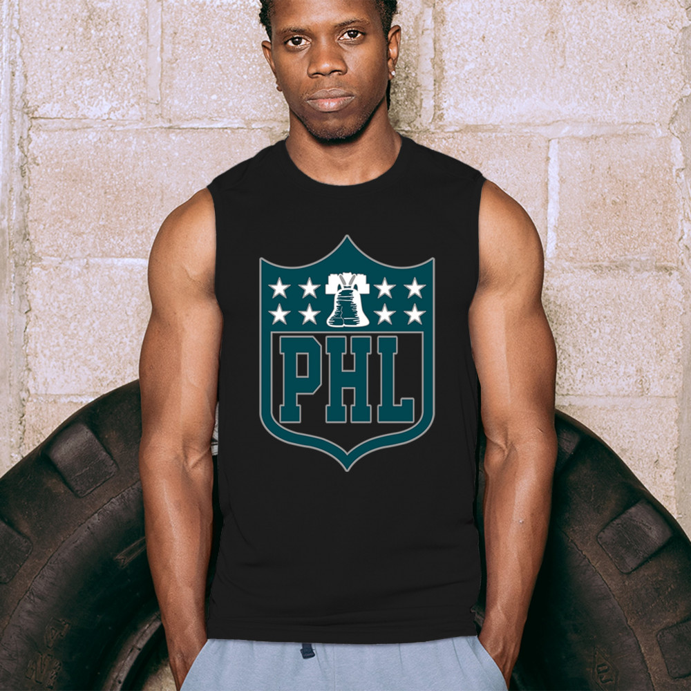 PHILADELPHIA SHIELD men's muscle shirt birds football fan bleed green philly black