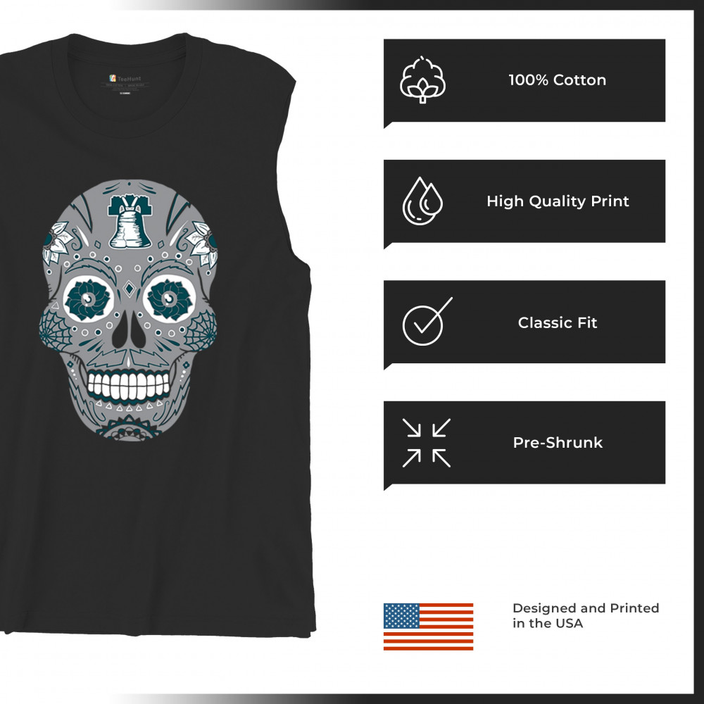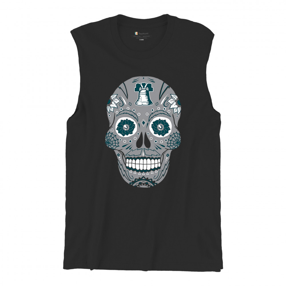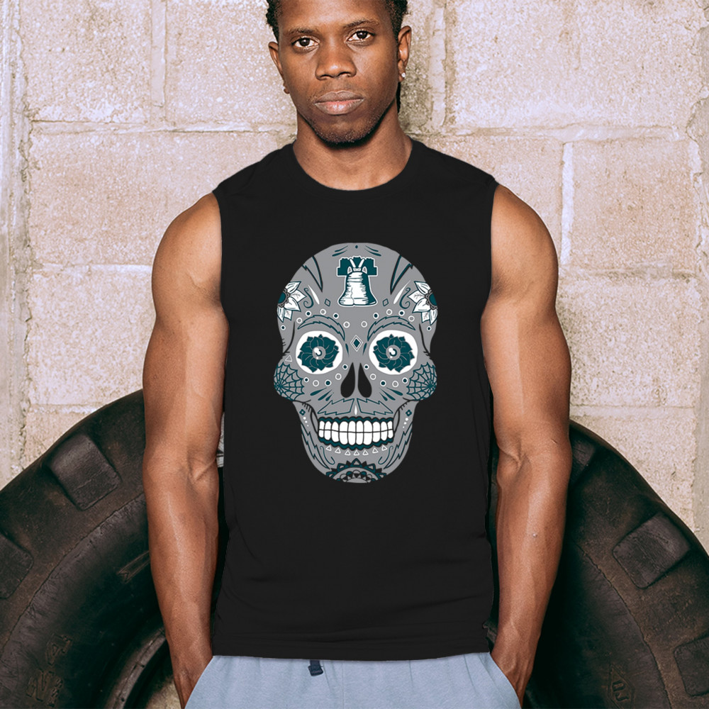PHILADELPHIA SUGAR SKULLL philadelphia sugar skull men's muscle shirt football die-hard philly fan black