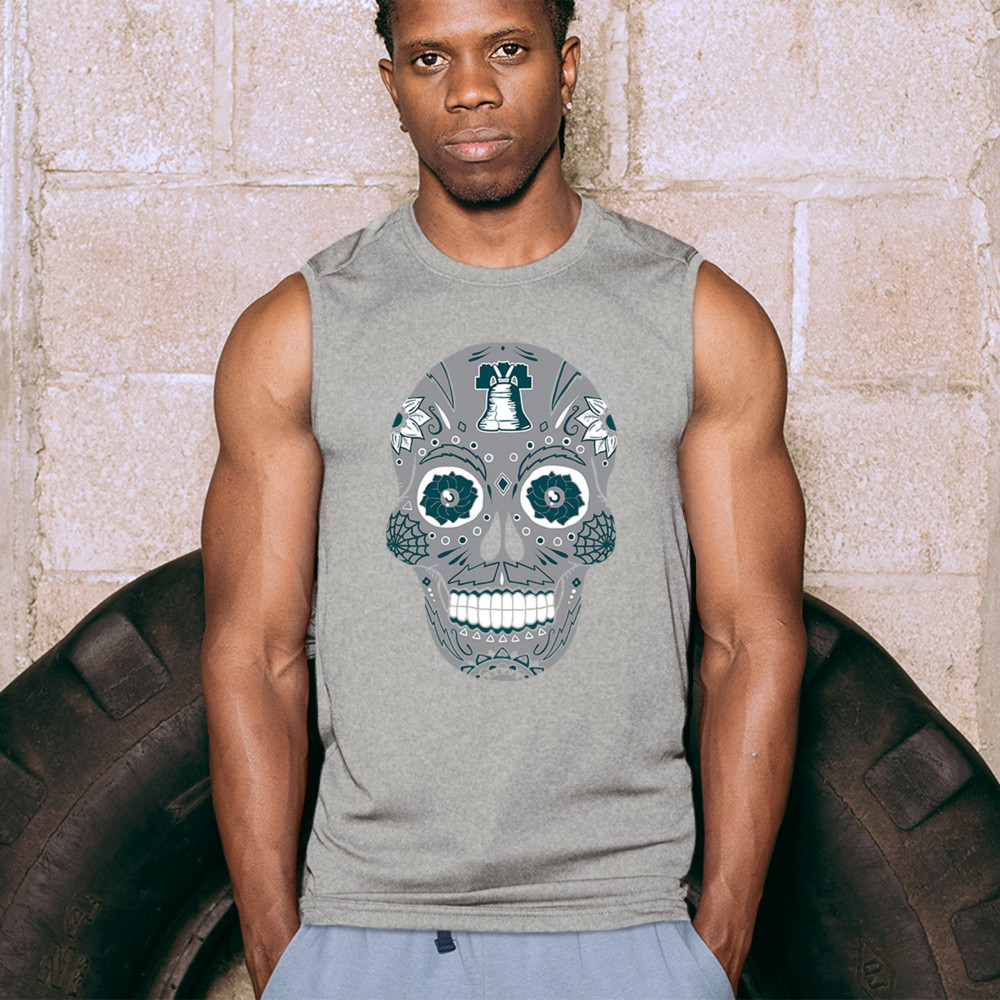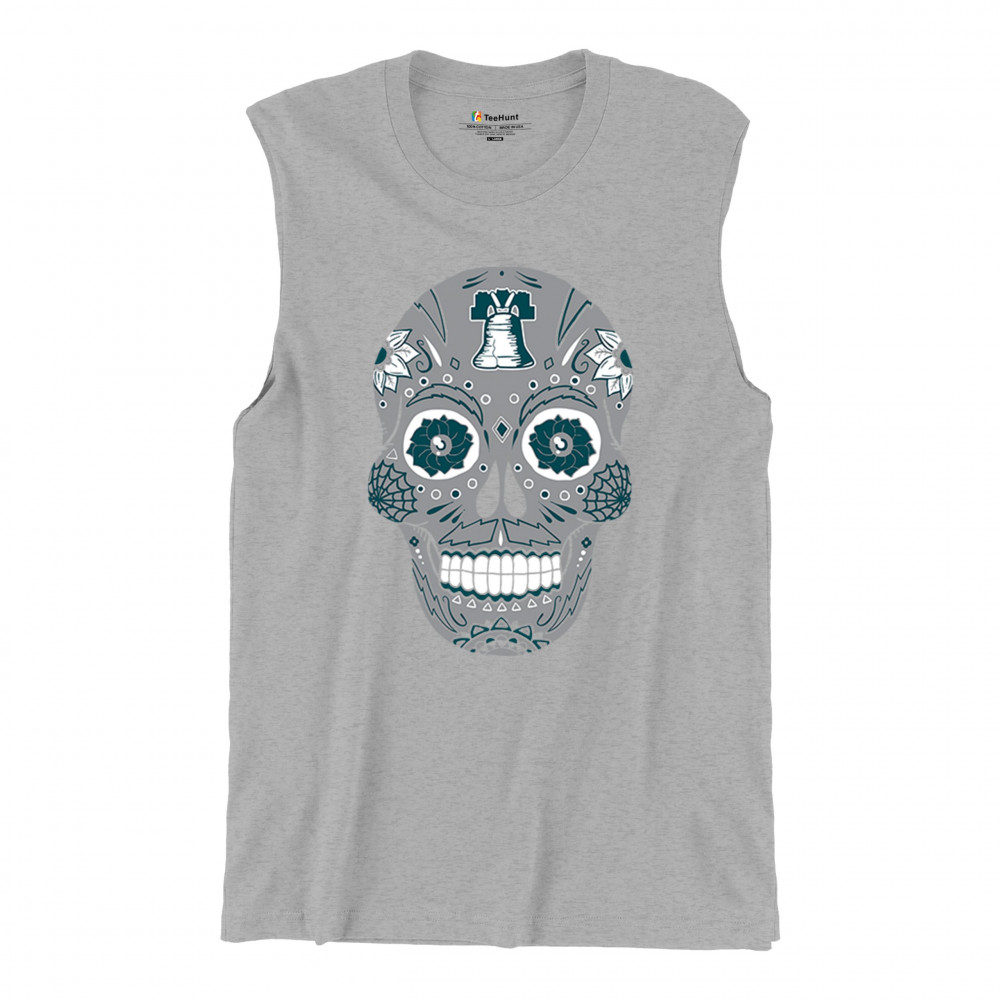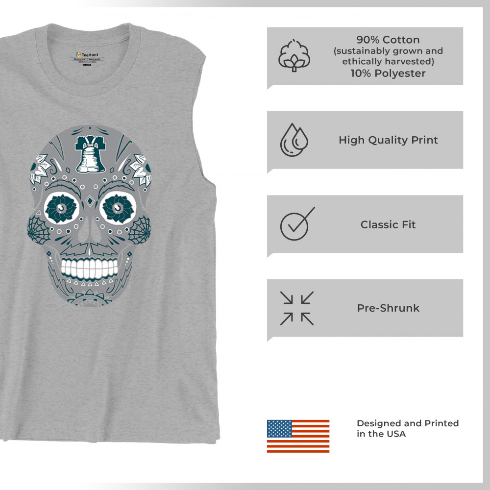 Philly meets tradition in this Sugar Skull design, mixing calavera art with the iconic liberty bell and marigold flowers. Perfect for Philly sports culture, fantasy league energy, or game day skull vibes, it captures Philly gothic art and fan zone spirit. A unique way to honor Dia de los Muertos while showing local Philadelphia pride and heritage in bold style.
