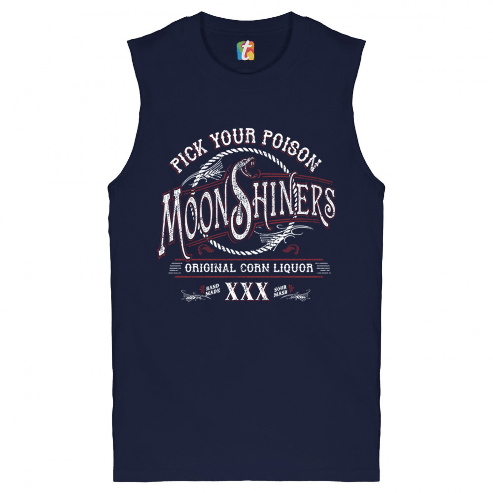PICK YOUR POISON MOONSHINERS muscle shirt original corn liquor xxx men's navy blue
