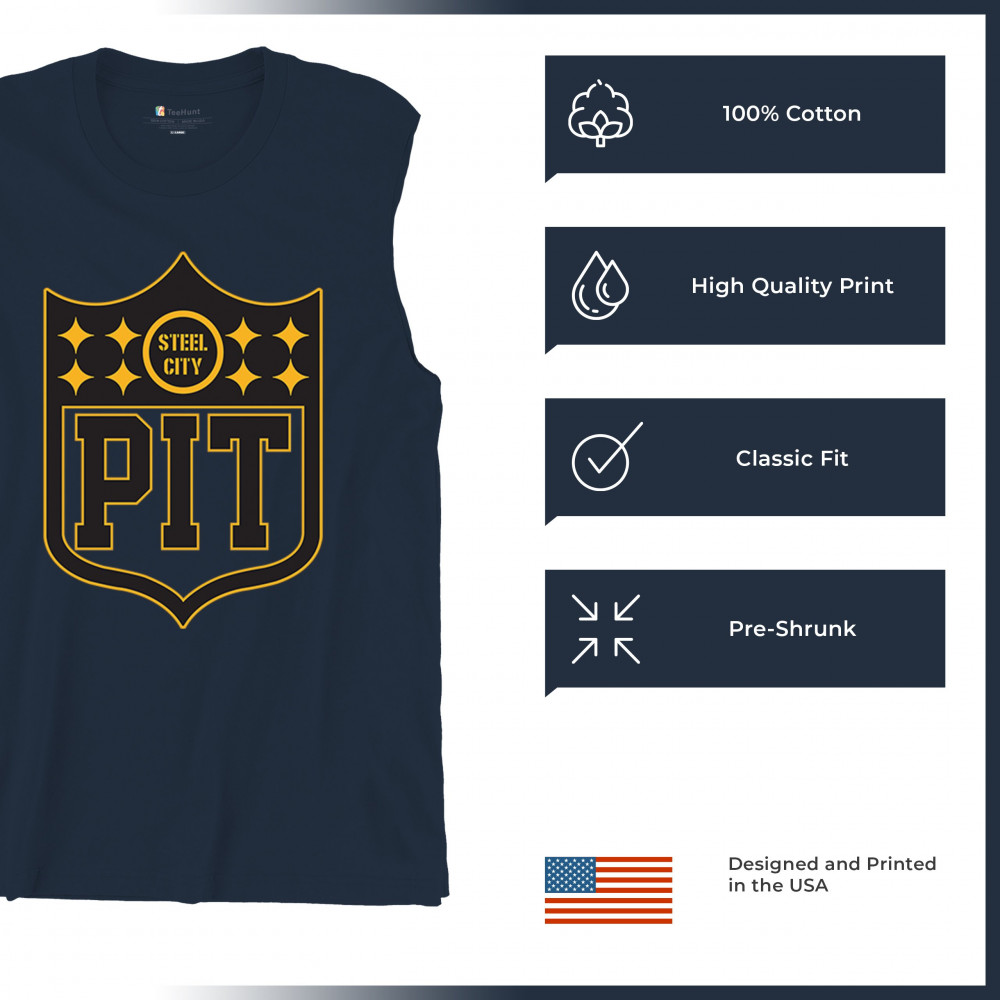 Steel City PIT shield football gear celebrating Pittsburgh football nation, gridiron tradition, playoff vibes, and sports heritage.