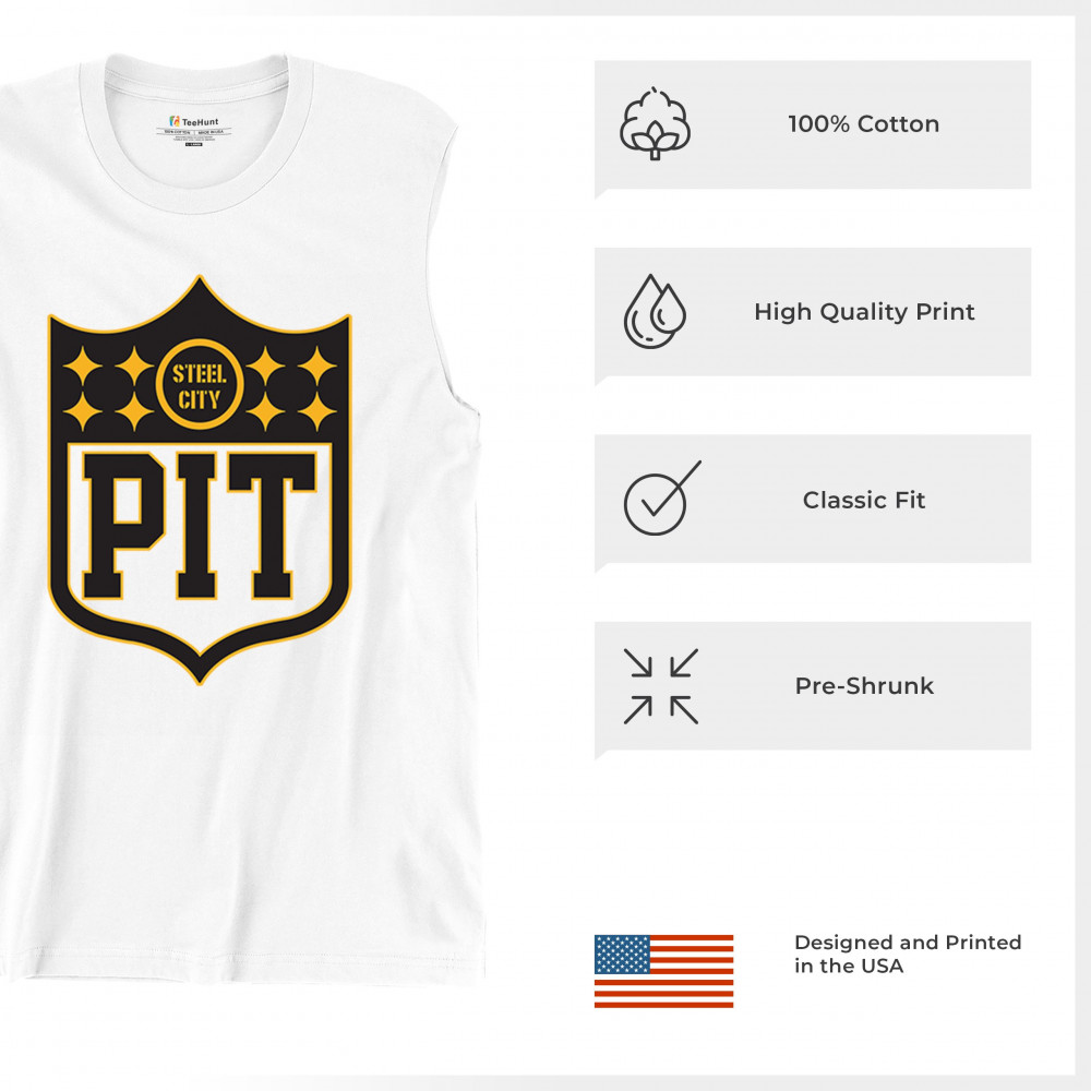 Steel City PIT shield football gear celebrating Pittsburgh football nation, gridiron tradition, playoff vibes, and sports heritage.