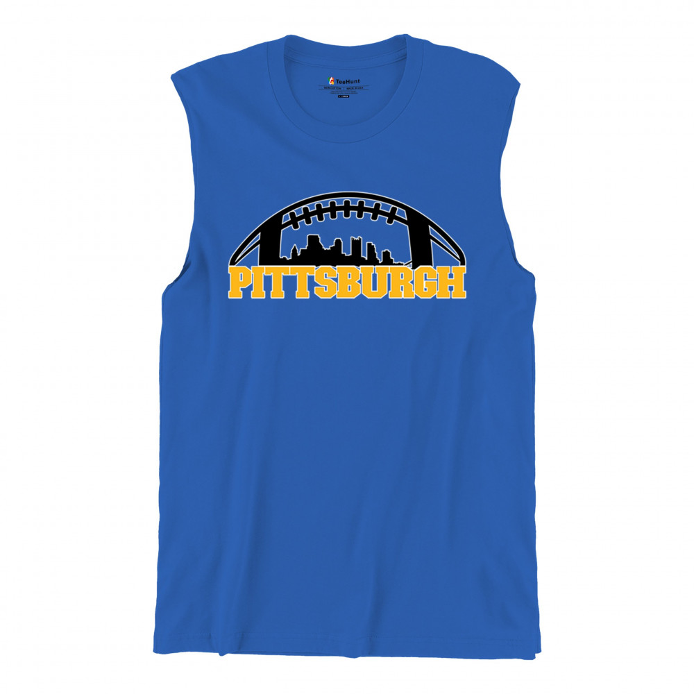 Celebrate Pittsburgh pride with a bold football design featuring the city skyline. Perfect for fans, game days, tailgates, and Steel City enthusiasts.