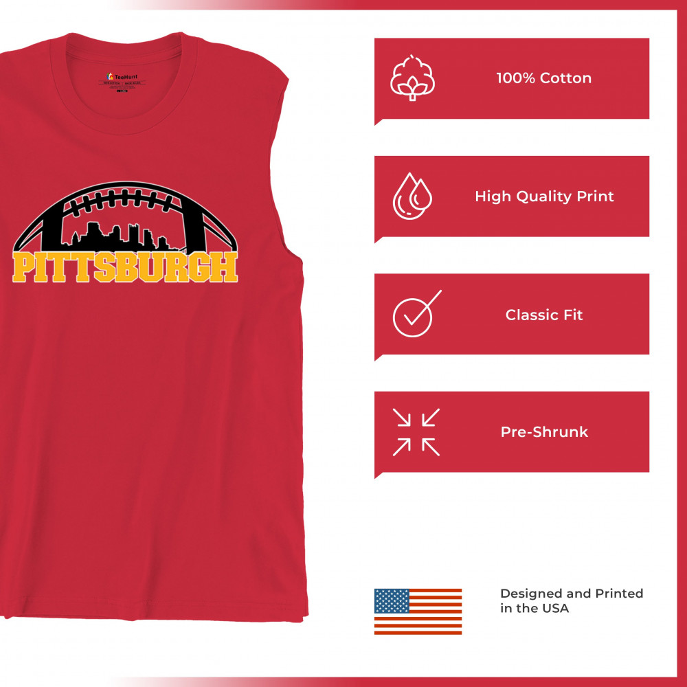Celebrate Pittsburgh pride with a bold football design featuring the city skyline. Perfect for fans, game days, tailgates, and Steel City enthusiasts.