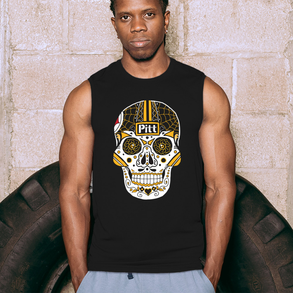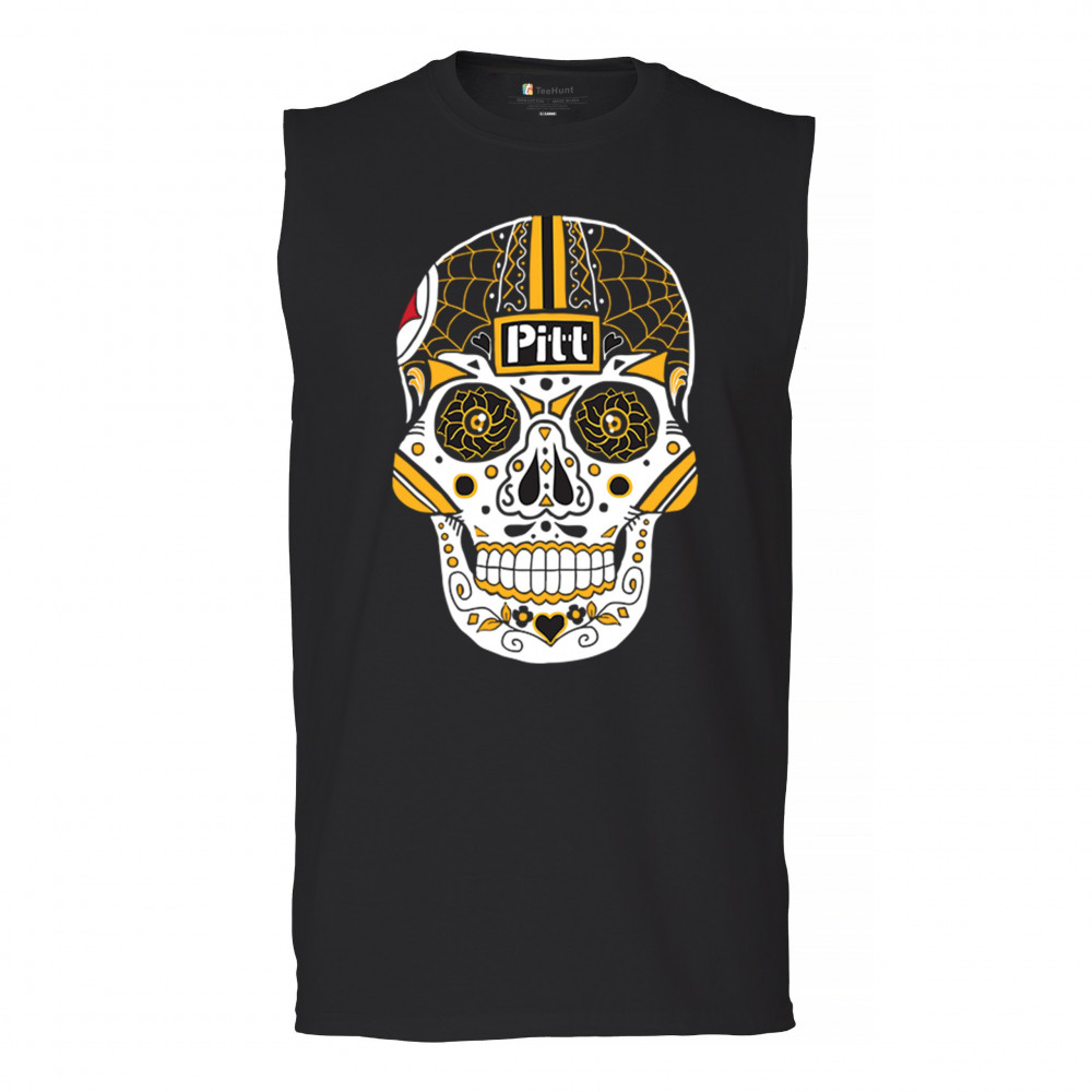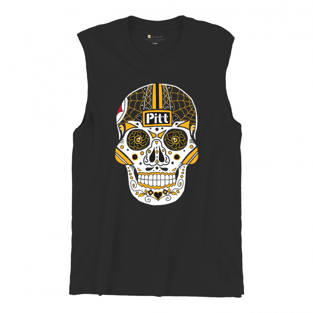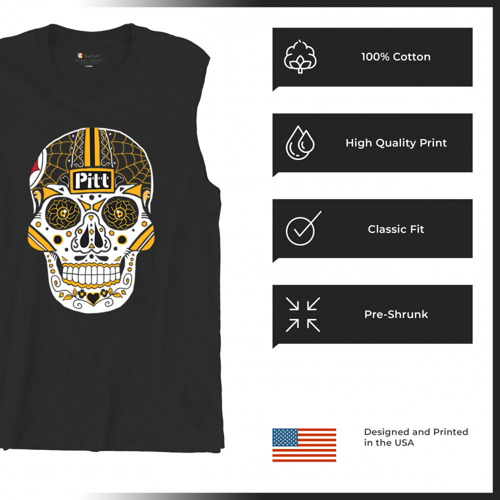 Pittsburgh Sugar Skull with Steel City tradition, black & gold pride, Rust Belt toughness, playoff energy, and fan culture.