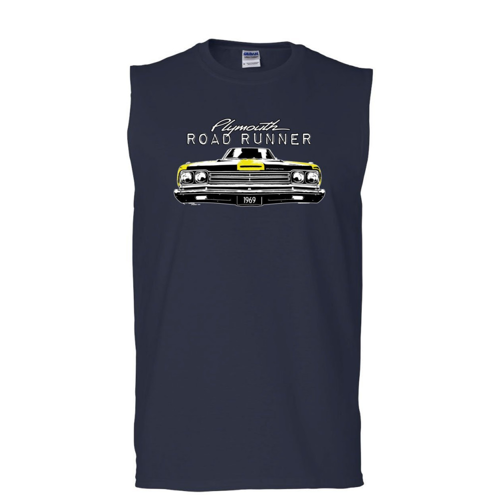 PLYMOUTH ROAD RUNNER 1969 muscle shirt route 66 american made classic sleeveless navy blue