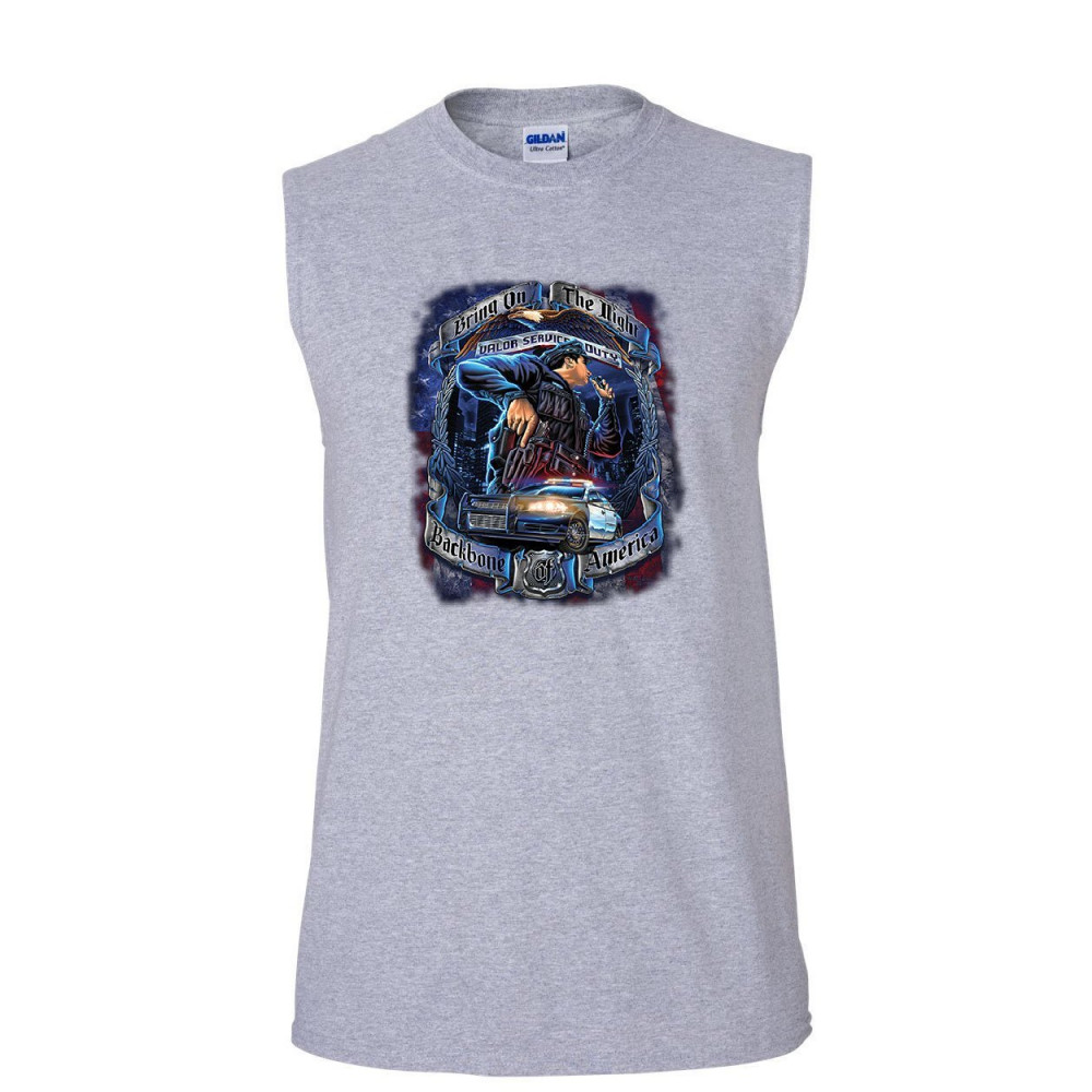 POLICE - BACKBONE OF AMERICA police backbone of america muscle shirt valor service duty cop patrol sleeveless gray