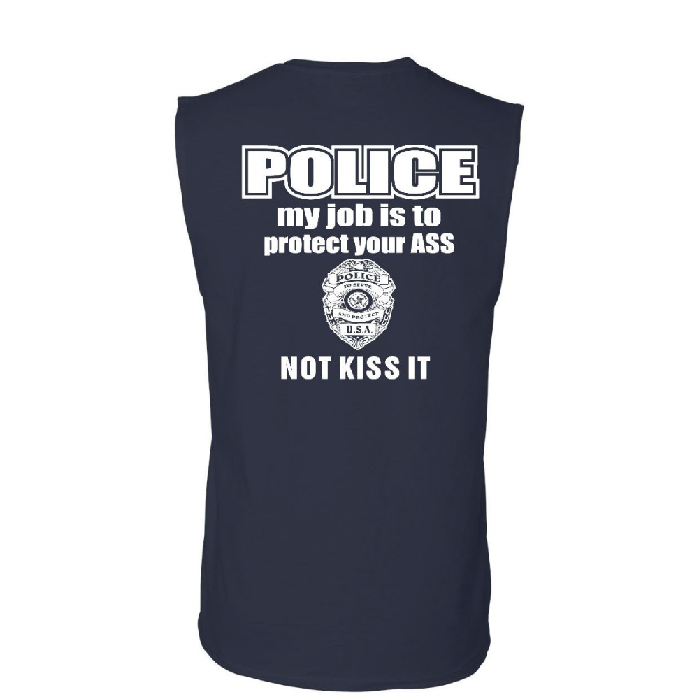 POLICE MY JOB IS TO PROTECT YOUR ASS muscle shirt funny cop navy blue