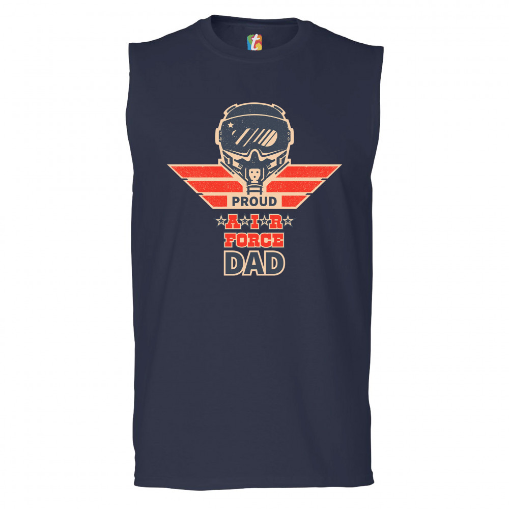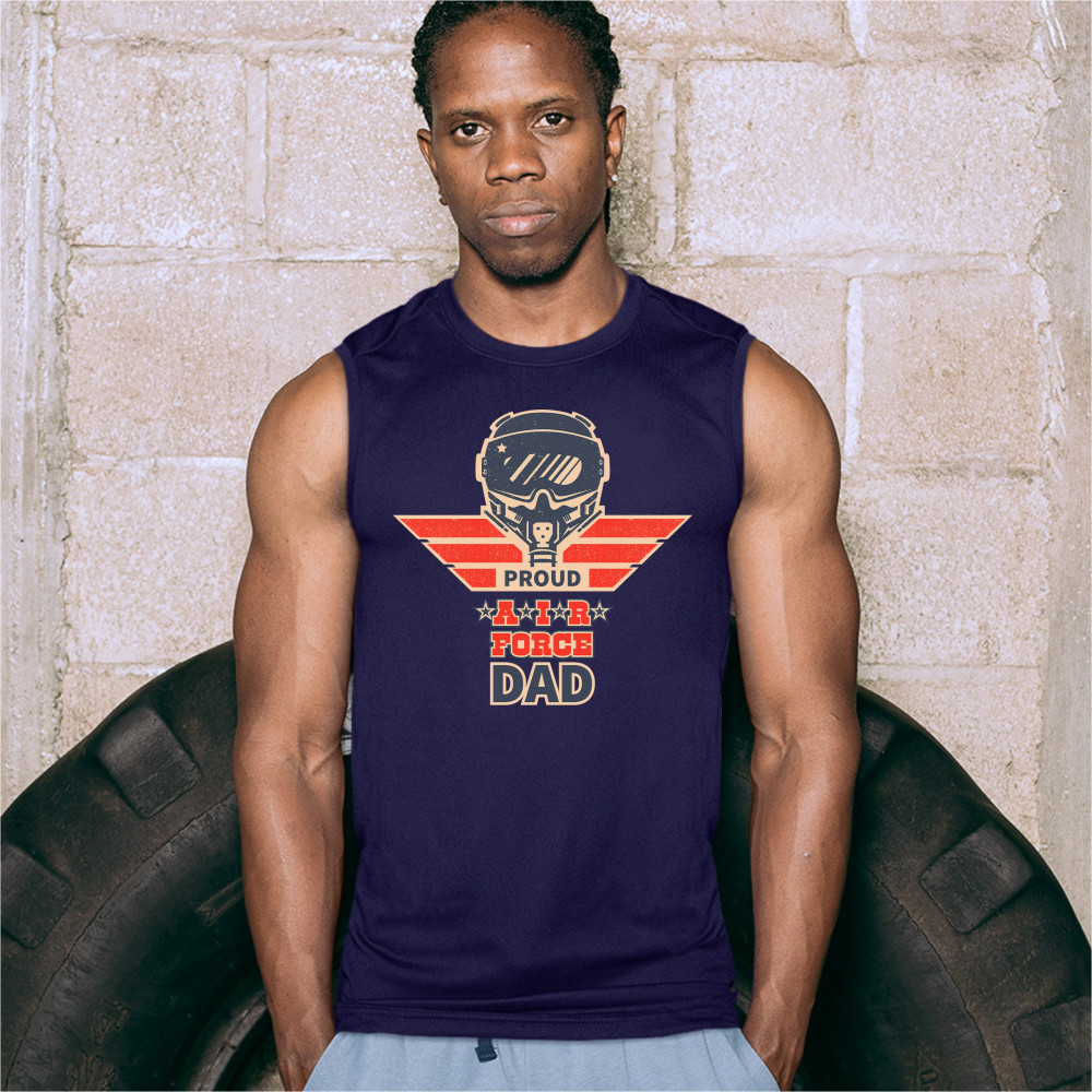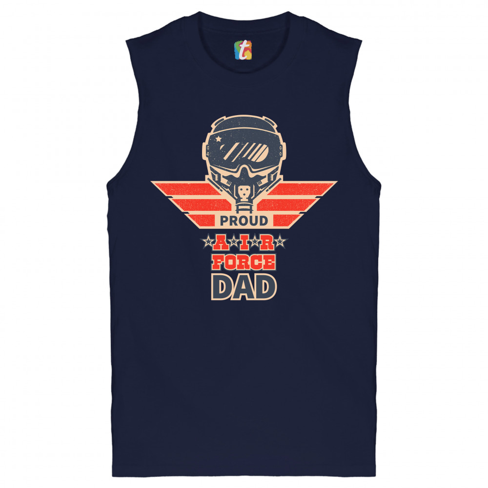 PROUD AIR FORCE DAD muscle shirt military father's day protector rad dad men's navy blue