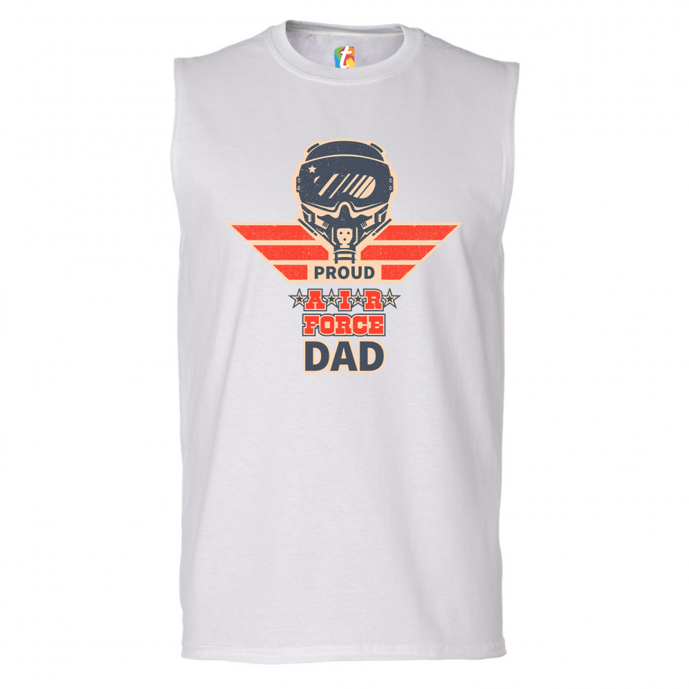 PROUD AIR FORCE DAD muscle shirt military father's day protector rad dad men's white