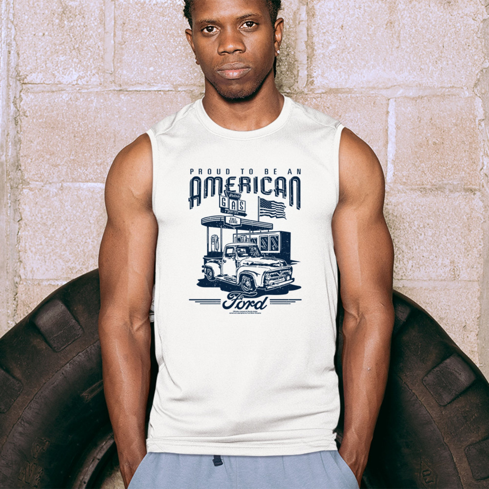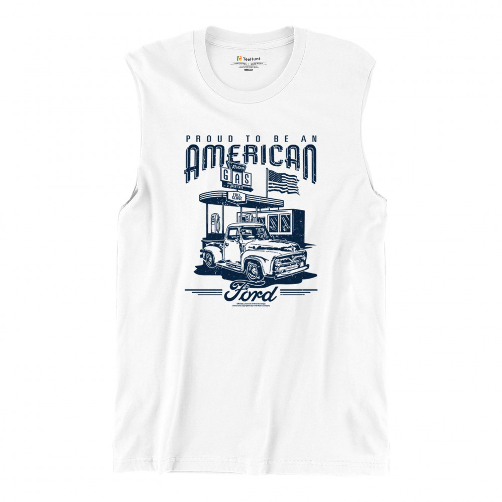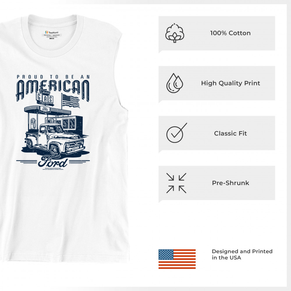 Celebrate Ford's legacy with this vintage 1950s F-Series truck design featuring an American flag. A perfect gift for Ford and classic car enthusiasts.