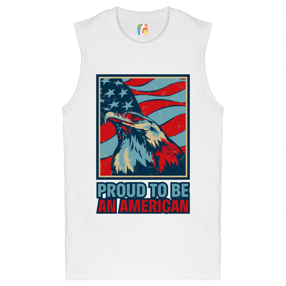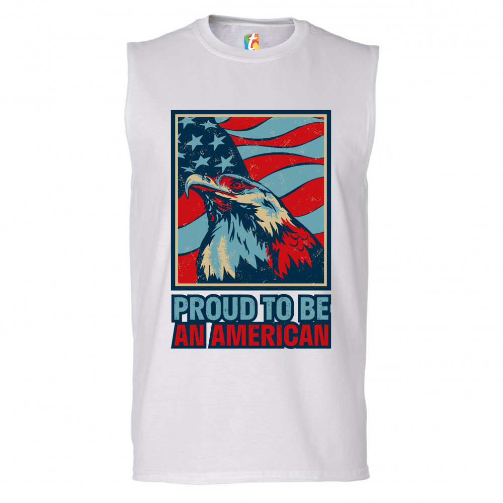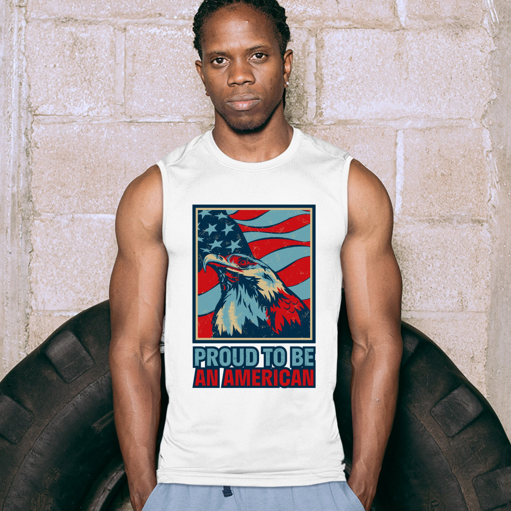 PROUD TO BE AN AMERICAN muscle shirt 4th of july bald eagle patriotic men's white