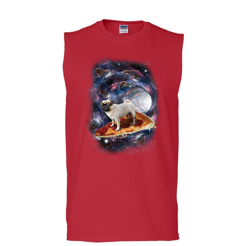 PUG SPACE PIZZA SURFER muscle shirt weird goggles galaxy dog lovers sleeveless red
