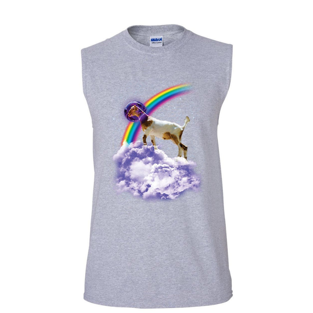 RAINBOW GOAT ON A CLOUD muscle shirt galaxy space funny universe gag sleeveless gray