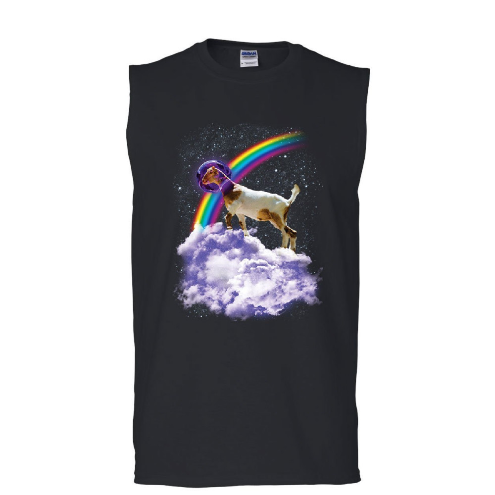 RAINBOW GOAT ON A CLOUD muscle shirt galaxy space funny universe gag sleeveless black
