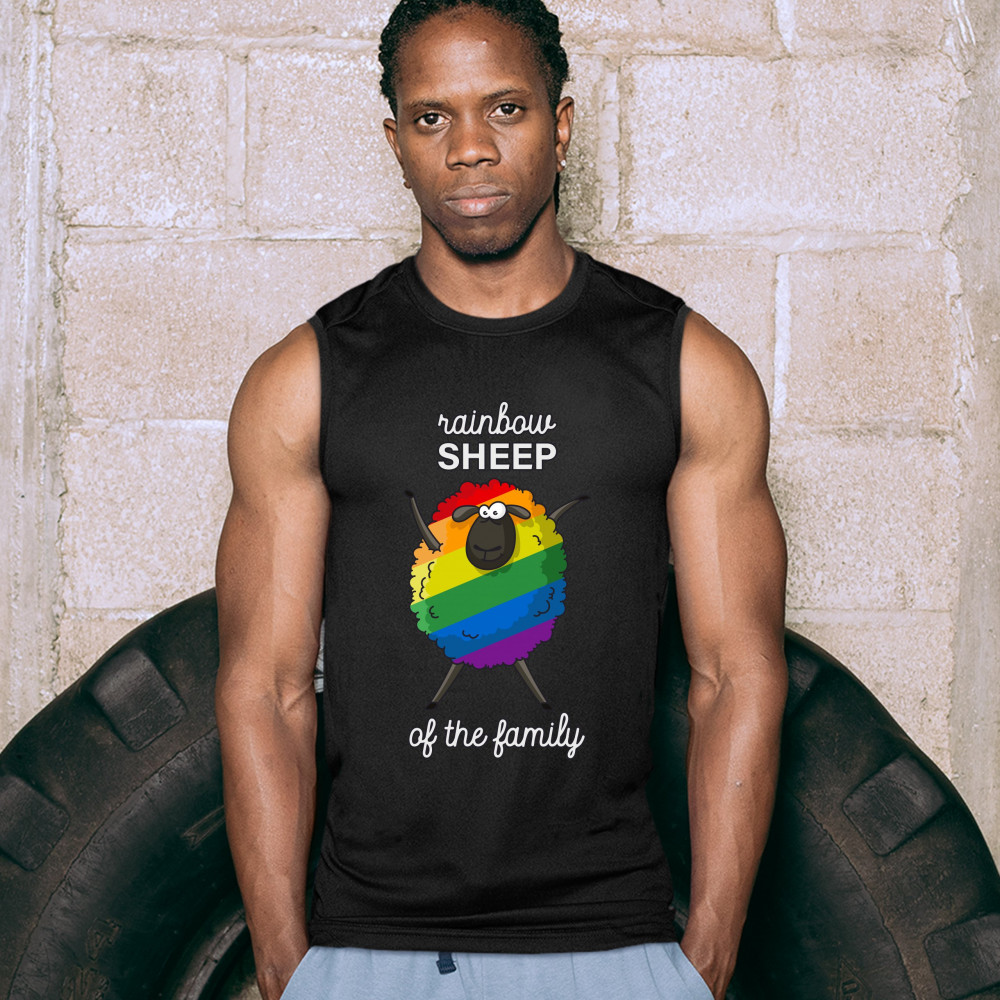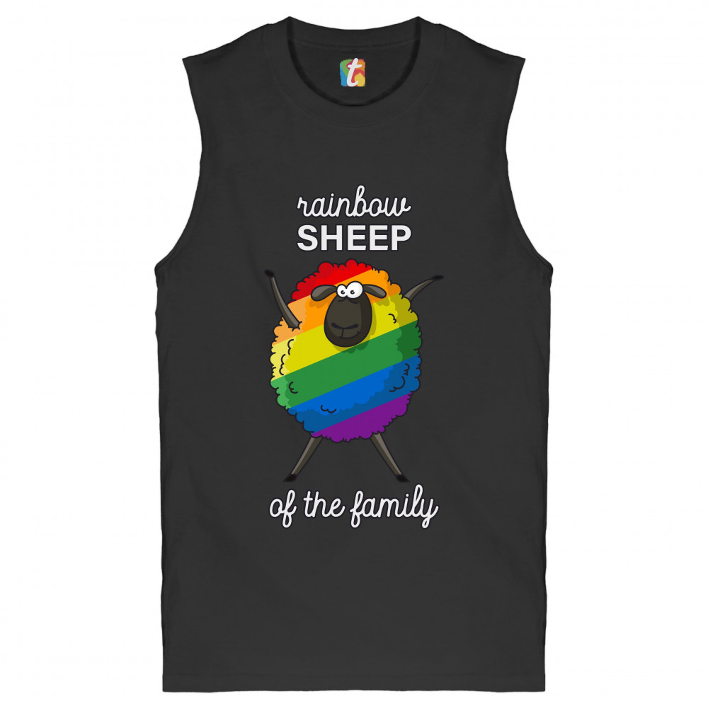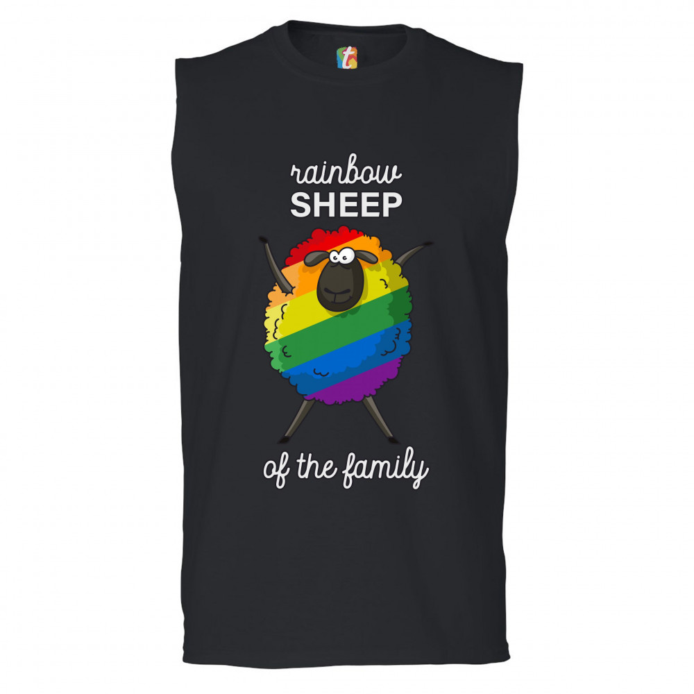 RAINBOW SHEEP OF THE FAMILY muscle shirt gay pride lgbt support funny men's black