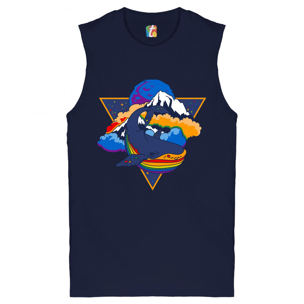 RAINBOW SPACE WHALE muscle shirt lgbt pride queer tolerance trippy men's navy blue