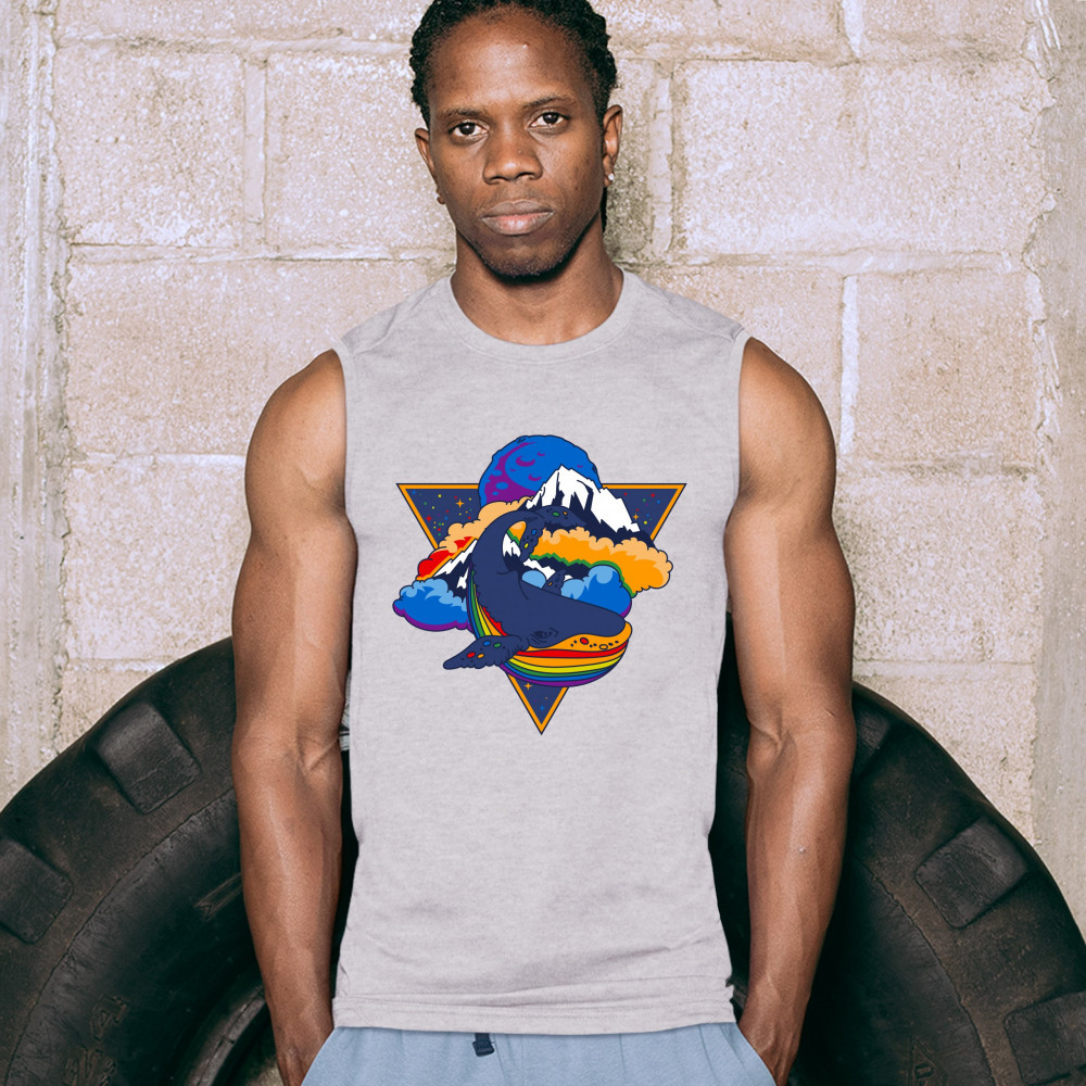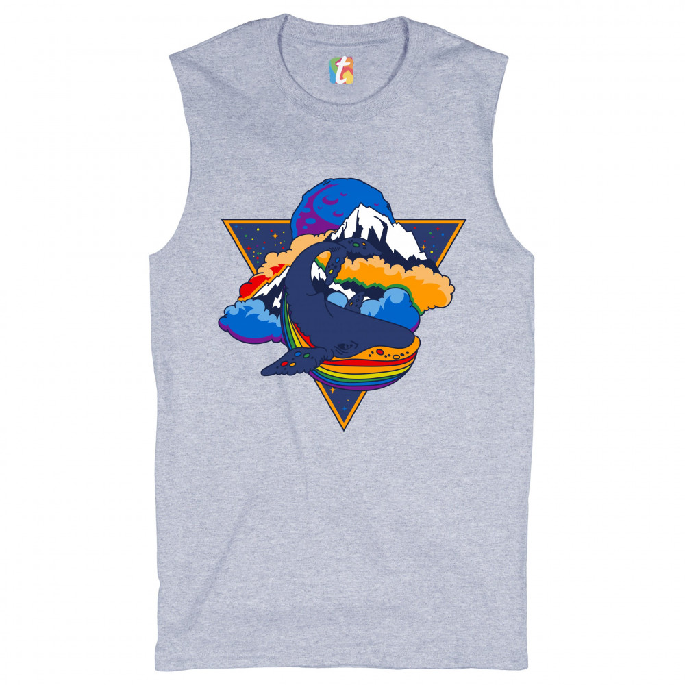 RAINBOW SPACE WHALE muscle shirt lgbt pride queer tolerance trippy men's gray