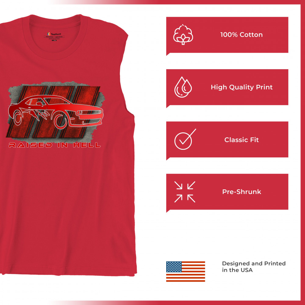Bring heat to the streets with this Raised in Hell design. Featuring a blazing red muscle car and aggressive claw marks, it's perfect for Scat Pack lovers, burnout warriors, and throttle addicts. Whether you're tearing down the strip or parked at the meet, this design delivers pure muscle attitude and street-born fire.