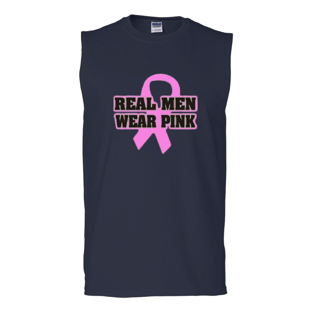 REAL MEN WEAR PINK muscle shirt breast cancer awareness navy blue