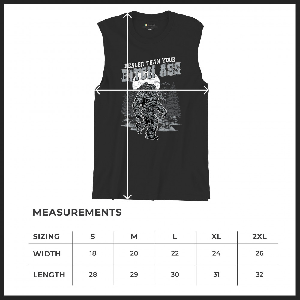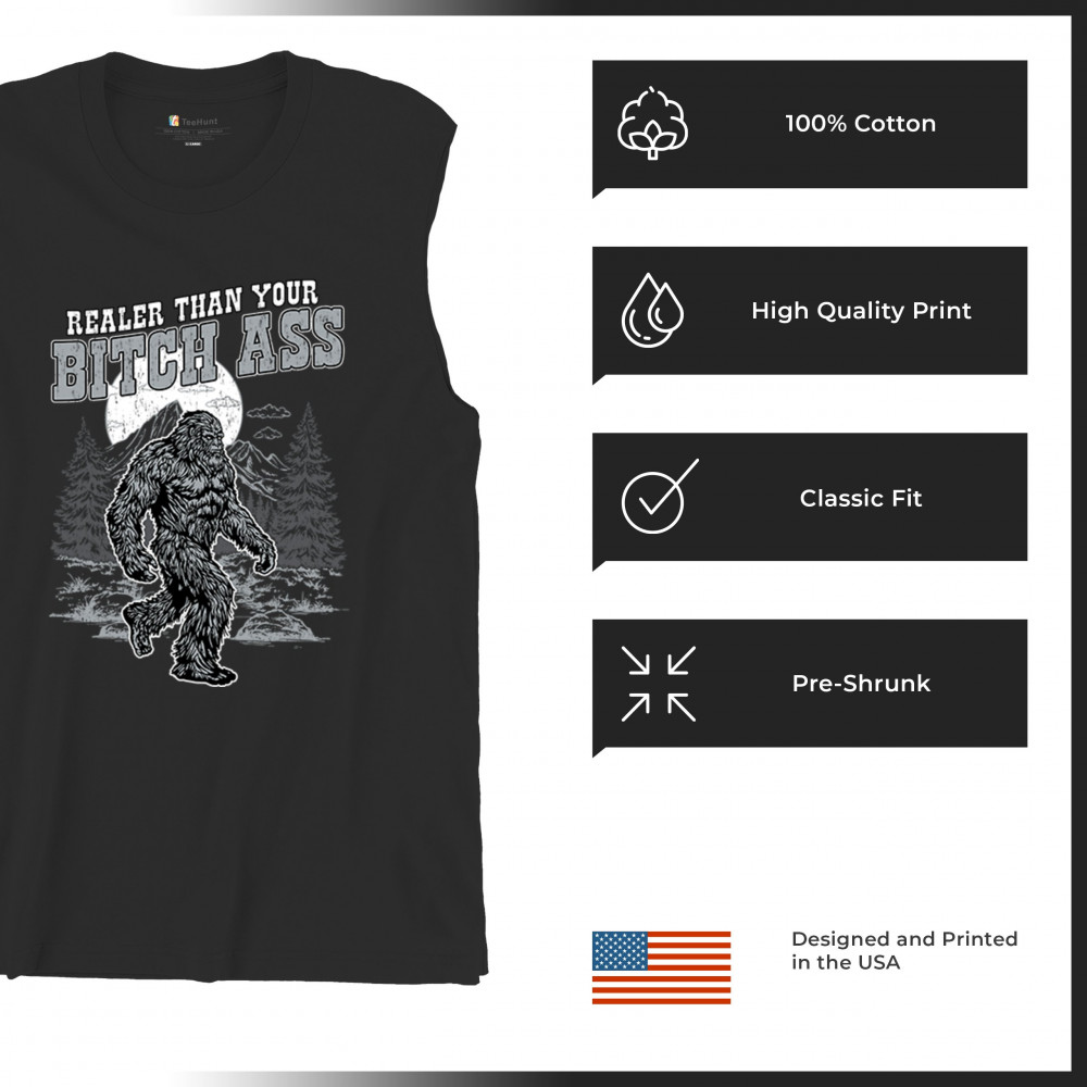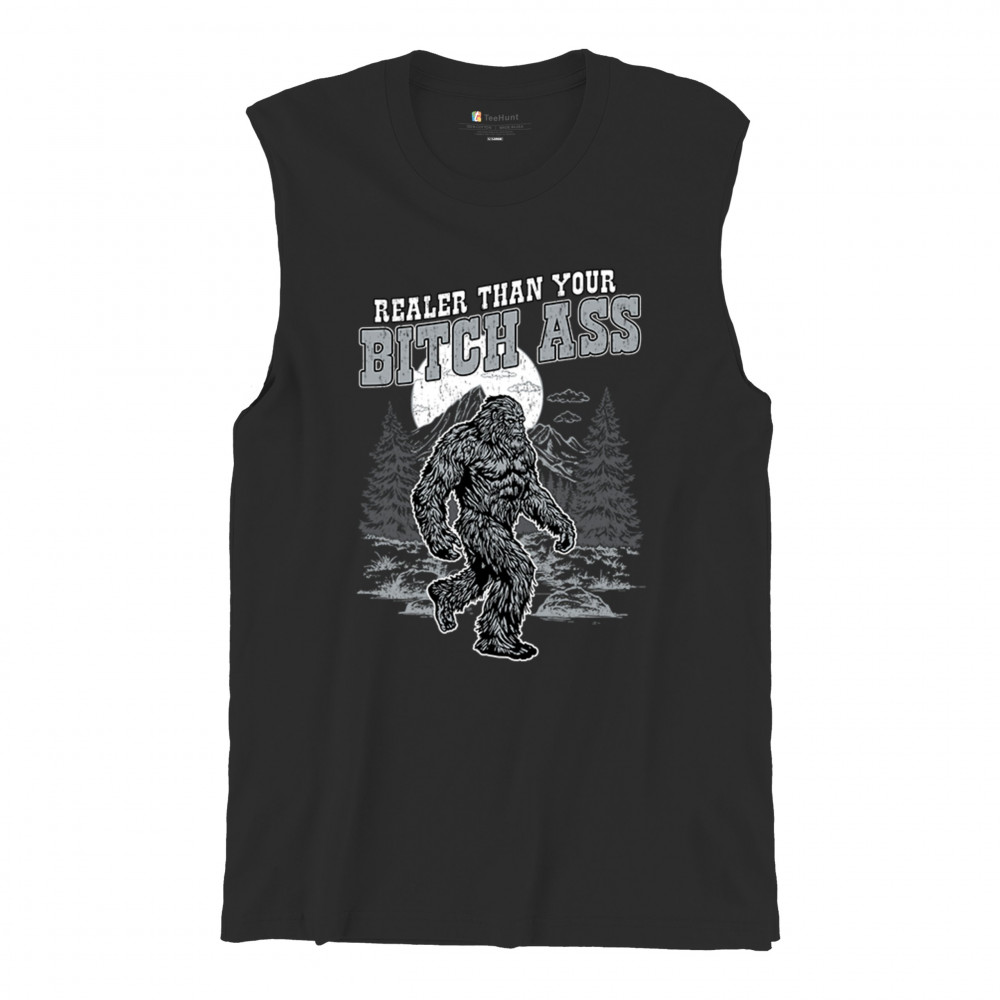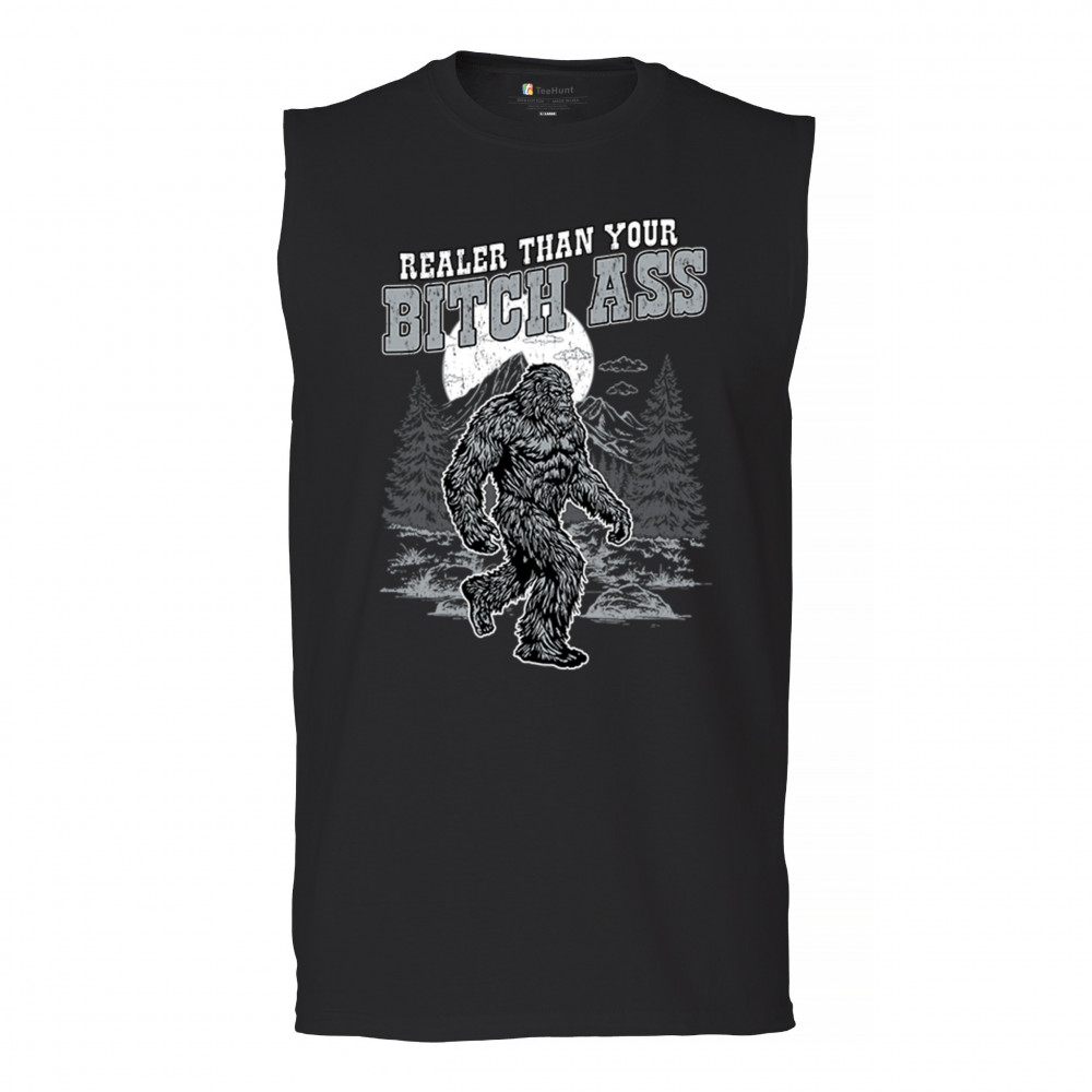 REALER THAN YOUR BITCH ASS muscle shirt funny bigfoot sarcastic joke men's black