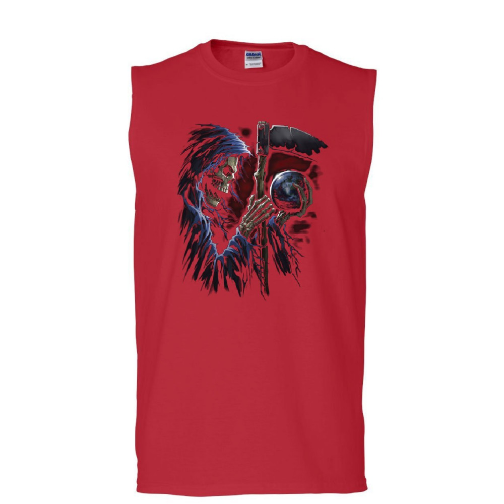 REAPER SPHERE SCYTHE muscle shirt death skull creepy scary monster sleeveless red