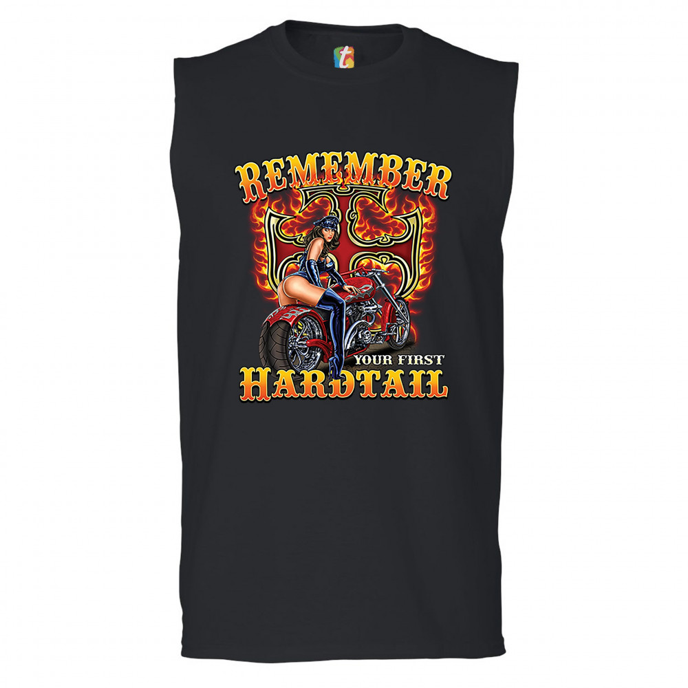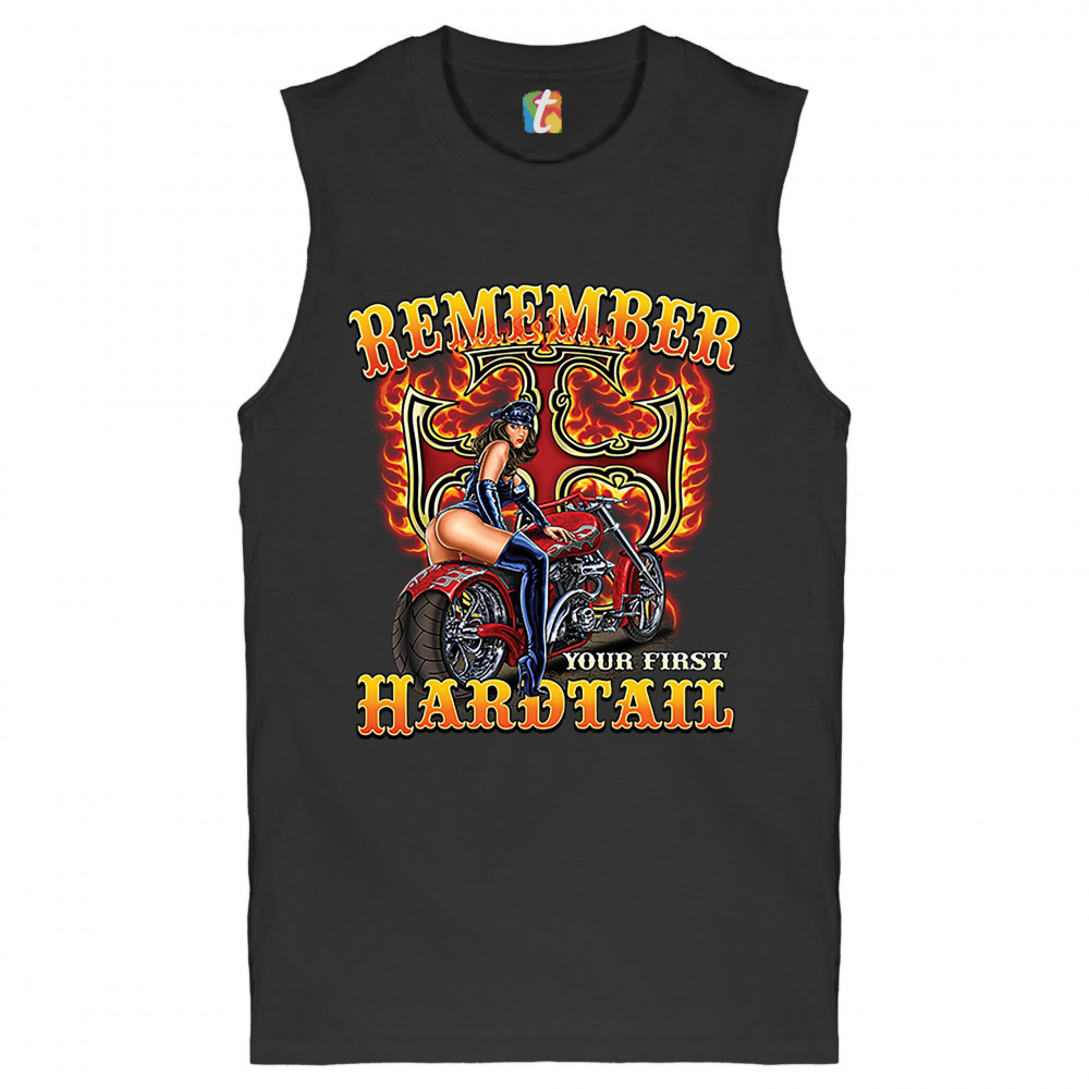 REMEMBER YOUR FIRST HARDTAIL muscle shirt biker babe motorcycle chopper men's black