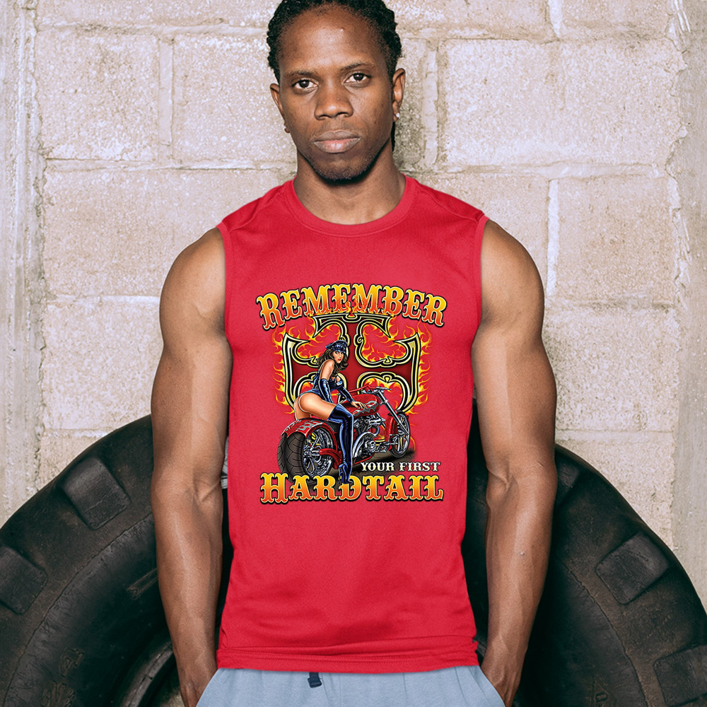 REMEMBER YOUR FIRST HARDTAIL muscle shirt biker babe motorcycle chopper men's red