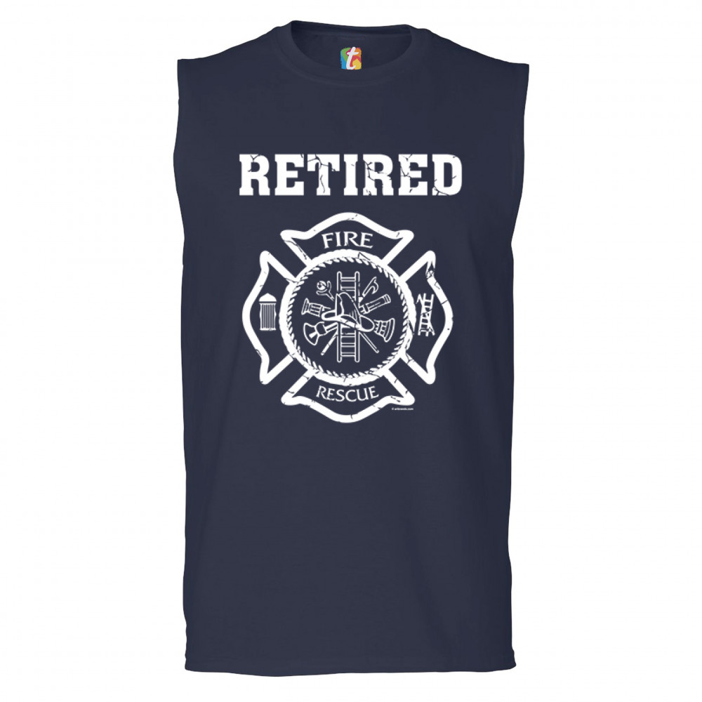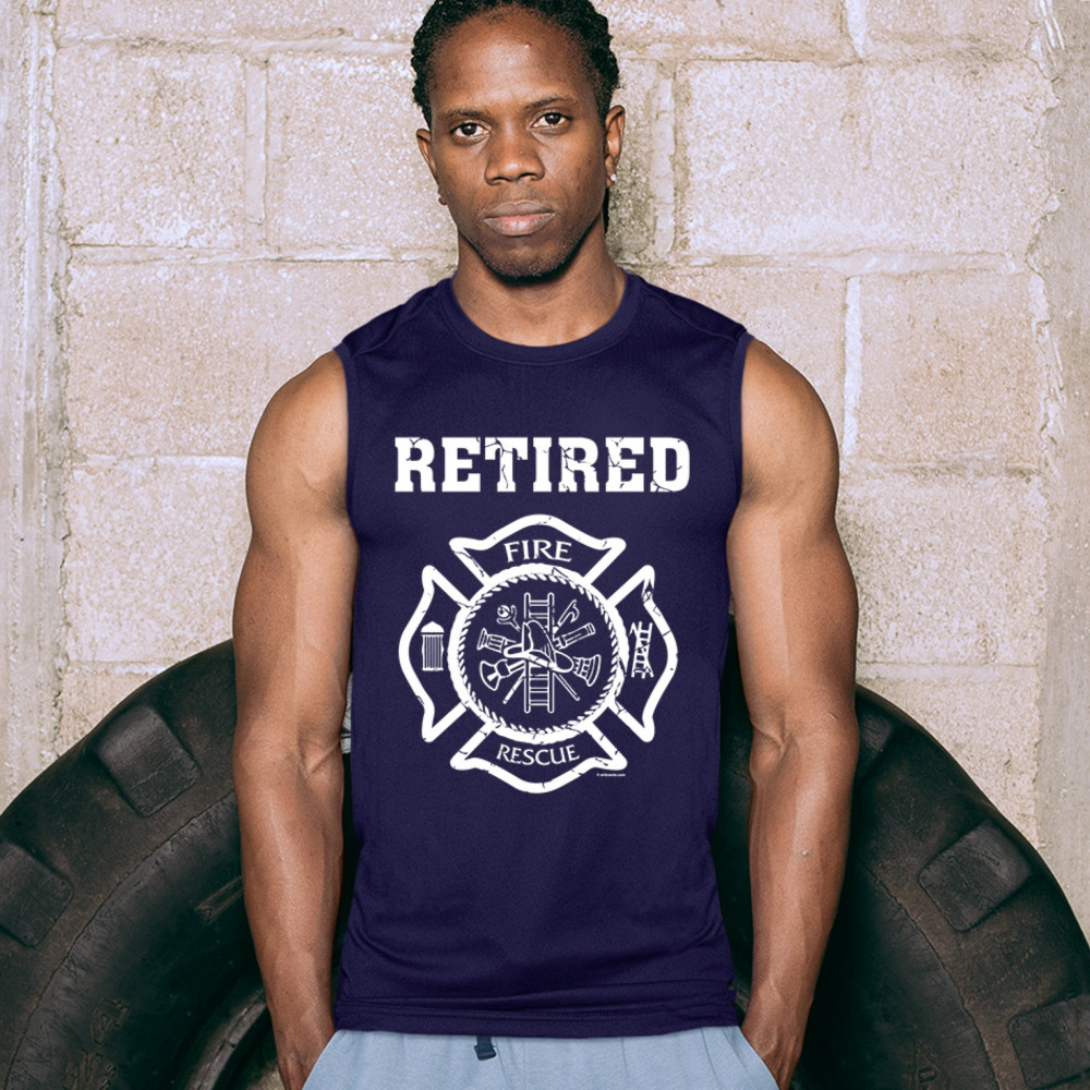 RETIRED FIREFIGHTER BADGE muscle shirt fire and rescue fire department men's navy blue