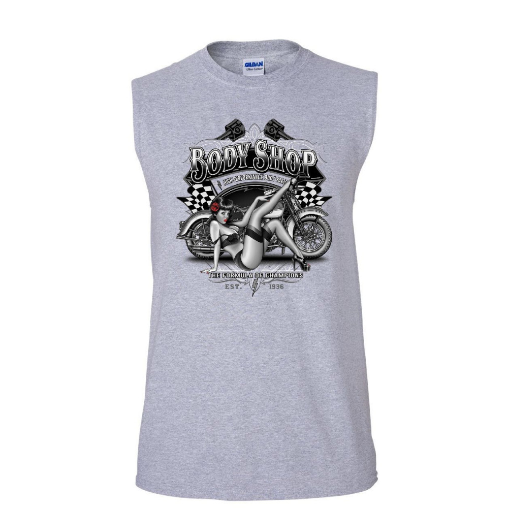 RETRO BODY SHOP muscle shirt chopper sexy pin-up girl route 66 biker sleeveless gray