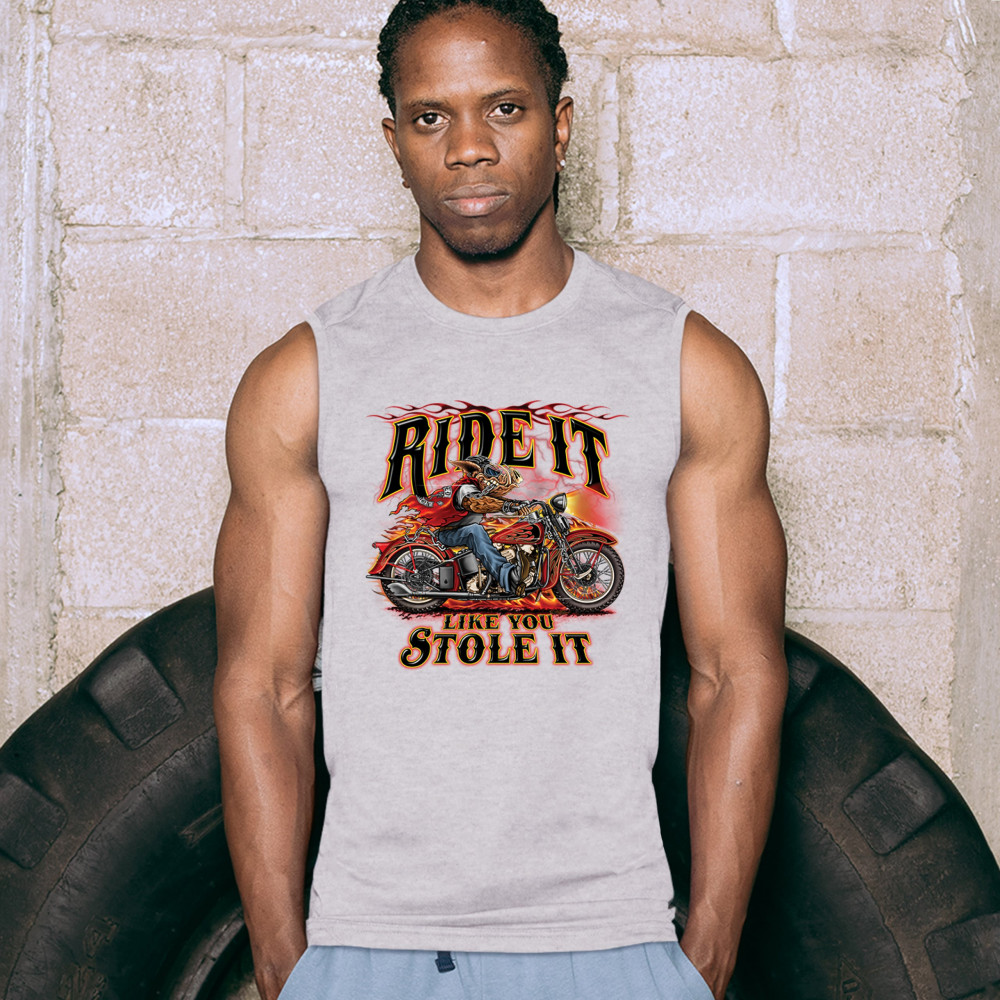 RIDE IT LIKE YOU STOLE IT muscle shirt biker born to be wild motorcycle men's gray