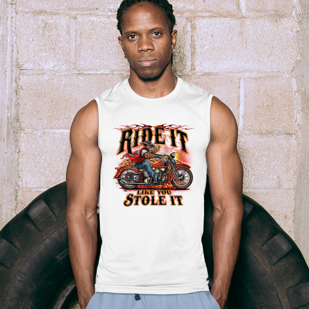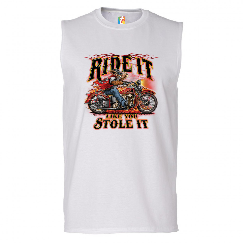 RIDE IT LIKE YOU STOLE IT muscle shirt biker born to be wild motorcycle men's white