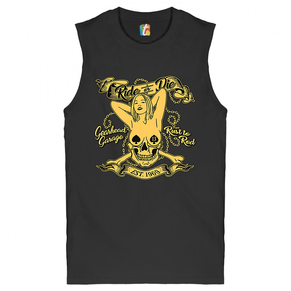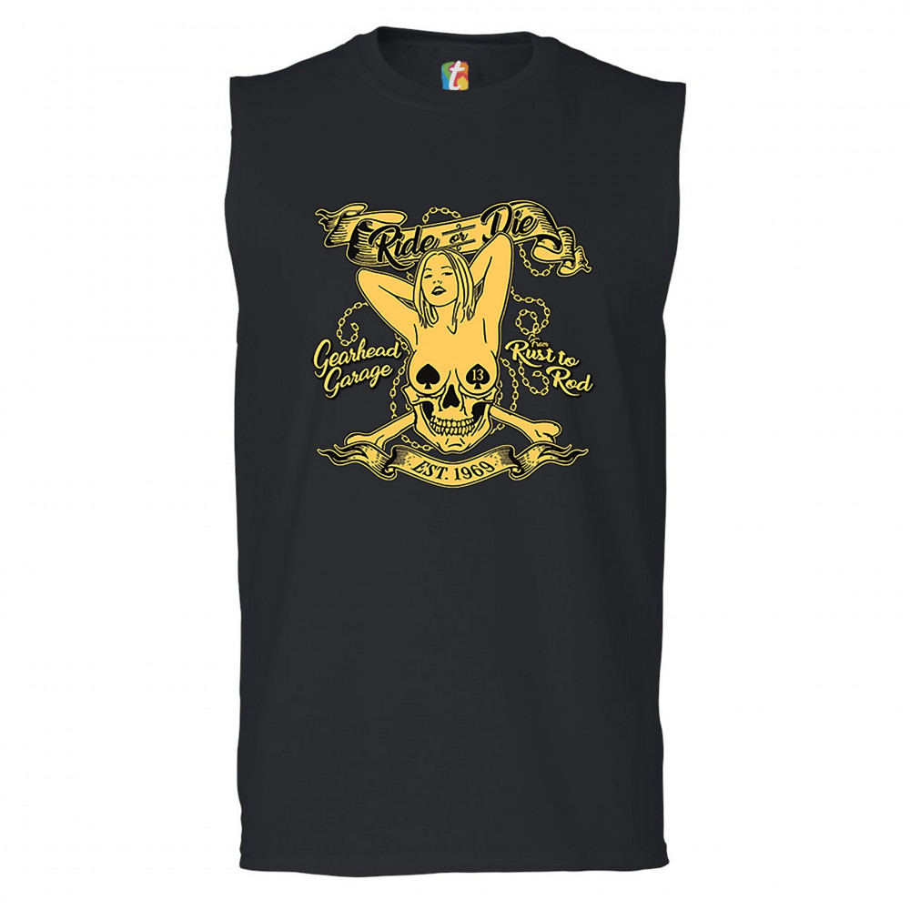 RIDE OR DIE muscle shirt gearhead garage from rust to rod biker babe men's black