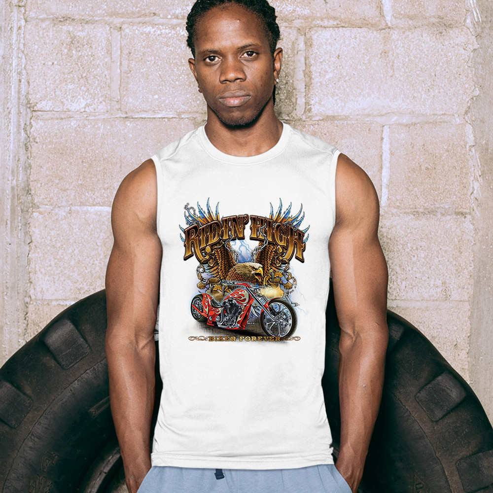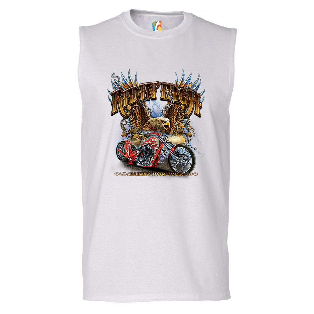RIDIN' HIGH muscle shirt biker forever chopper rider american eagle men's white