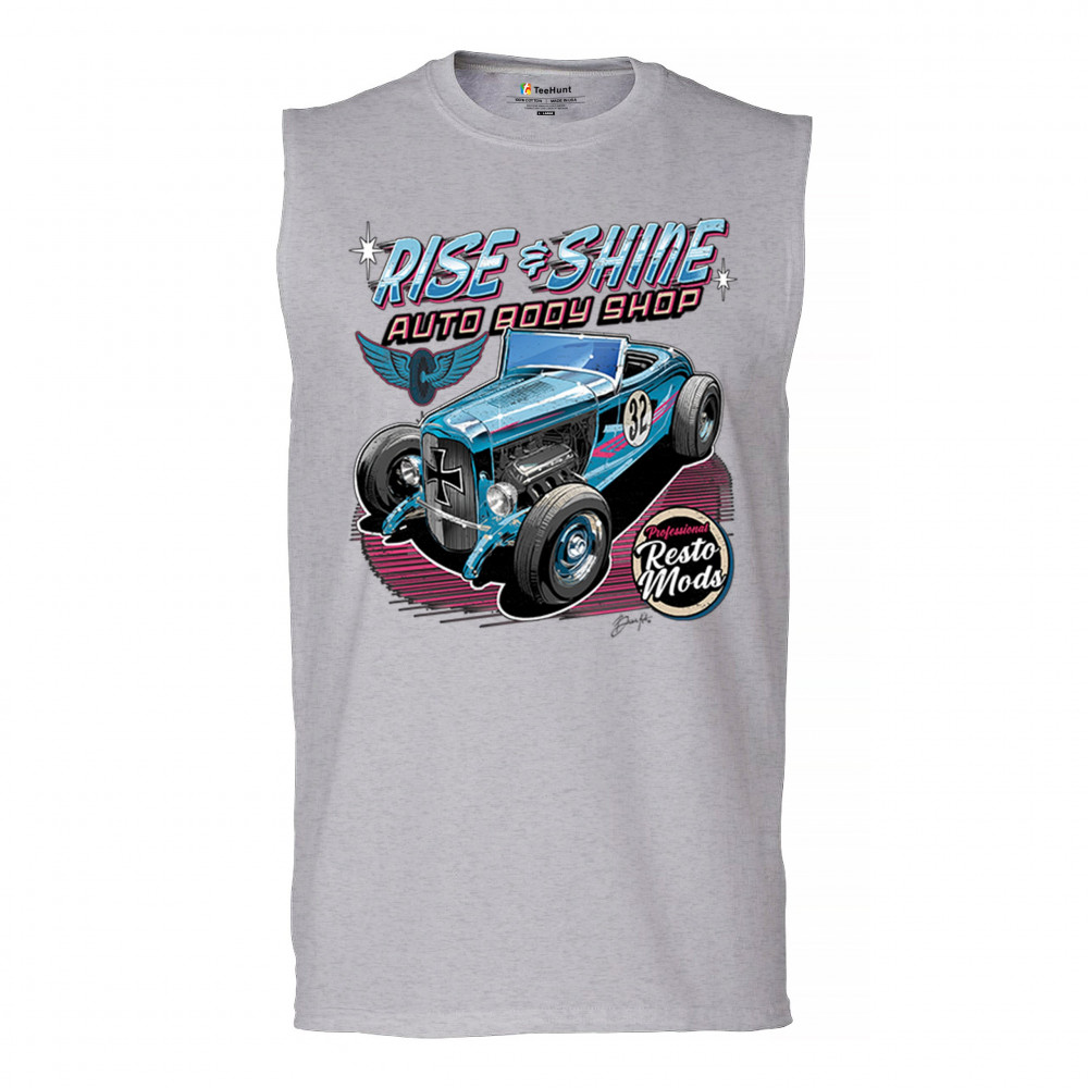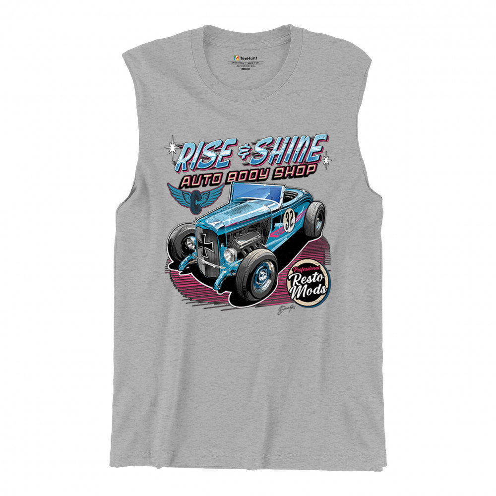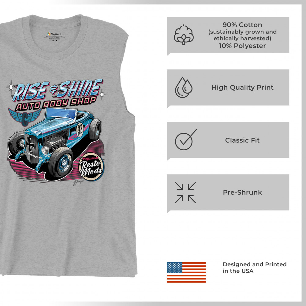 Celebrate vintage car culture with our "Rise & Shine Auto Body Shop" design. Perfect for car enthusiasts and auto restoration fans. Comfortable and durable.
