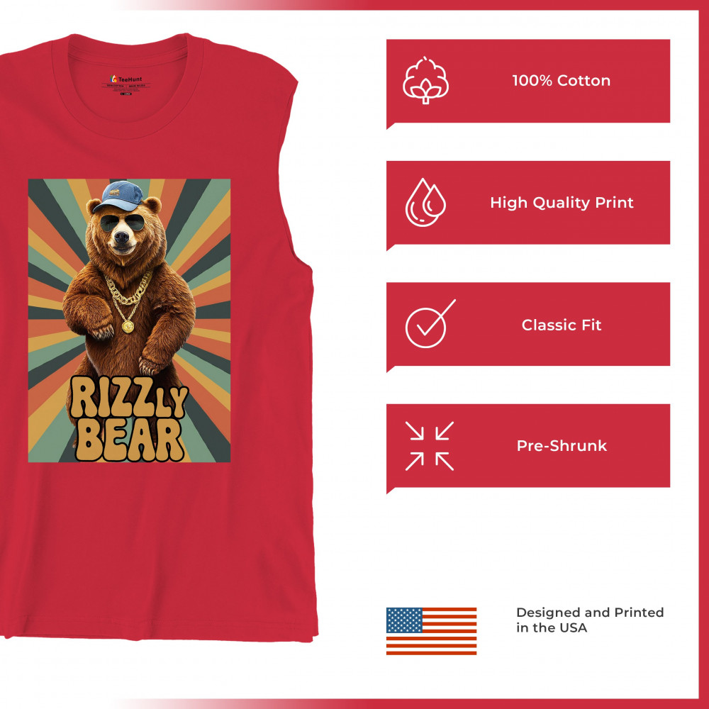 Here's to the bear that got the 'rizz.' With shades on and bling out, this bear is not just part of the scene; it is the scene. This design says 'I'm here to party', and the party doesn't start till the Rizzly Bear walks in.