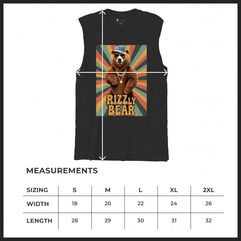 Here's to the bear that got the 'rizz.' With shades on and bling out, this bear is not just part of the scene; it is the scene. This design says 'I'm here to party', and the party doesn't start till the Rizzly Bear walks in.