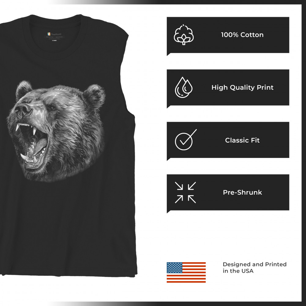 Bold roaring bear design for hunters, survivalists, and nature lovers. Perfect for hikes, camps, forest wear, and outdoor gear.