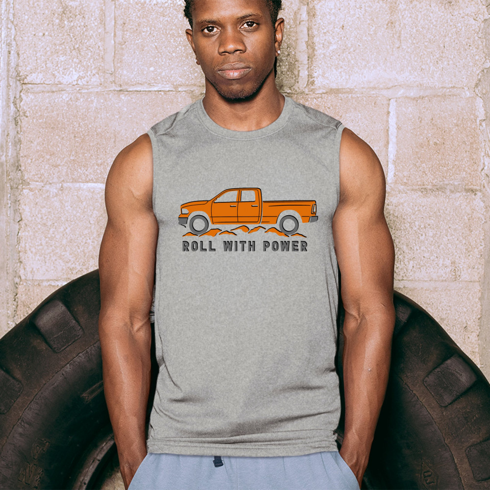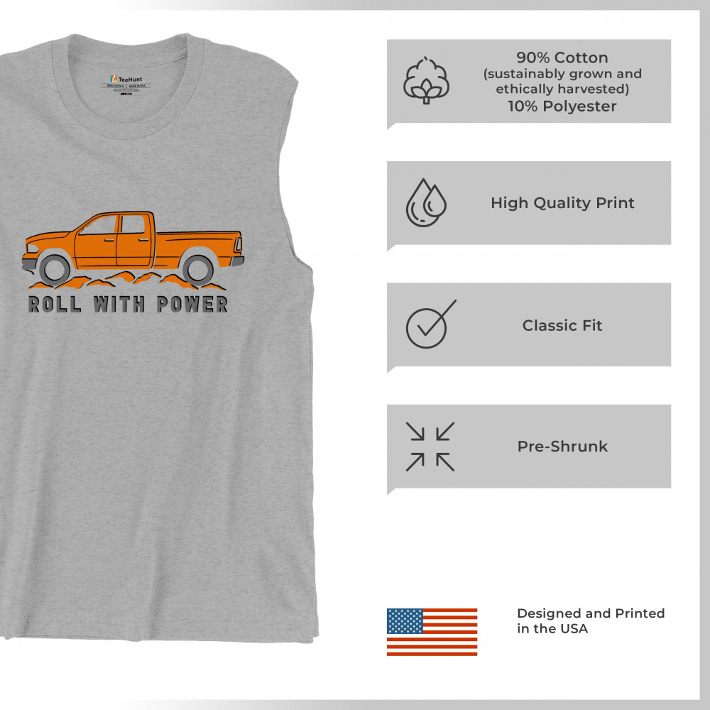 Pickup truck design for off-road fans and truck lovers. Show your road power and style with this bold “Roll With Power†truck graphic.