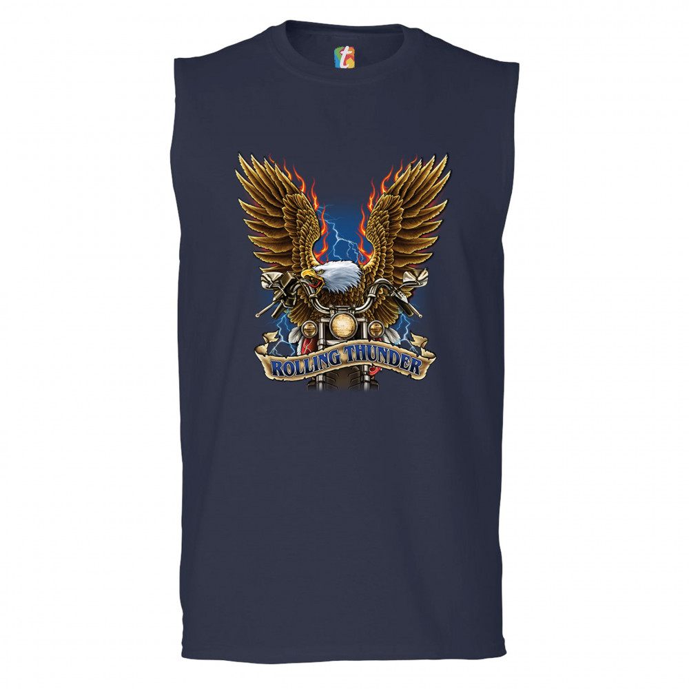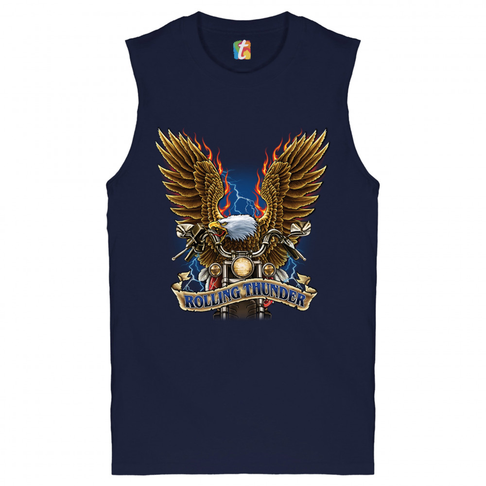 ROLLING THUNDER muscle shirt biker born to be wild bald eagle outlaw men's navy blue