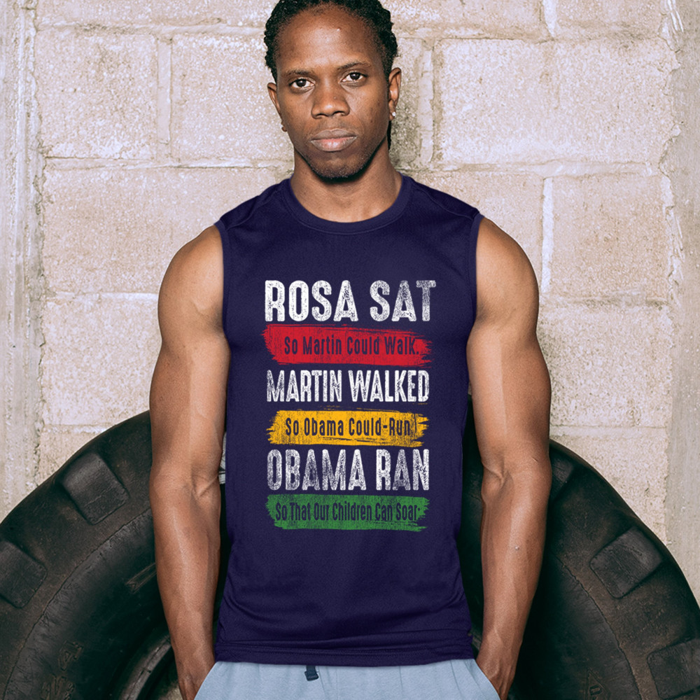 ROSA SAT MARTIN WALKED OBAMA RAN muscle shirt blm civil rights equality men's navy blue