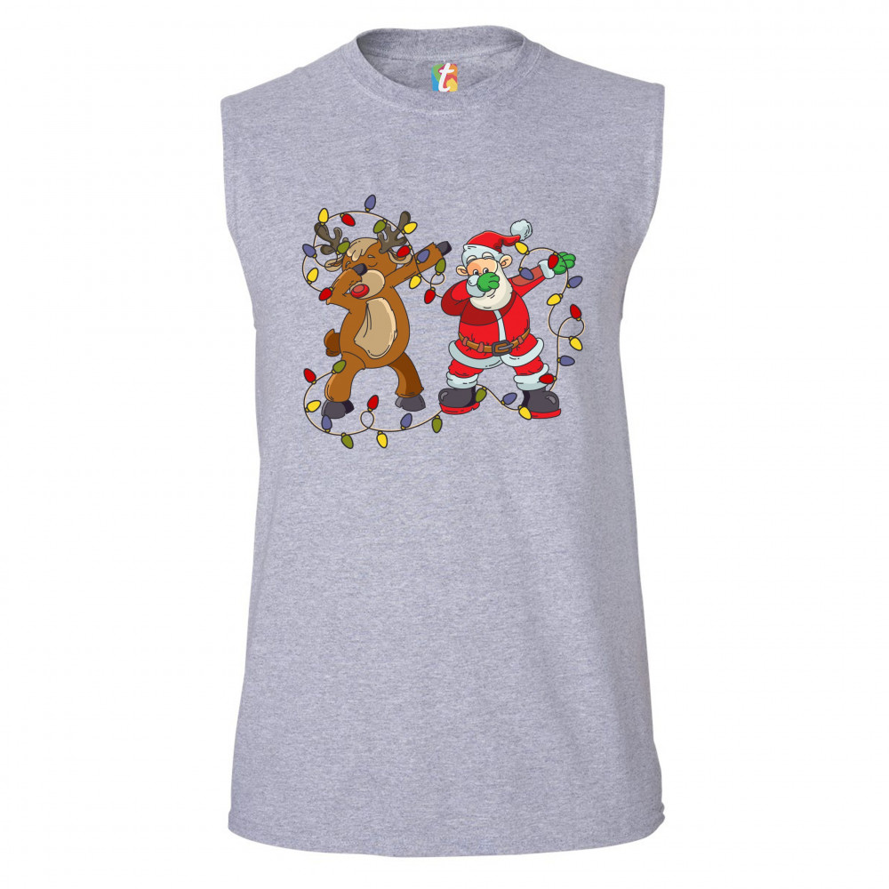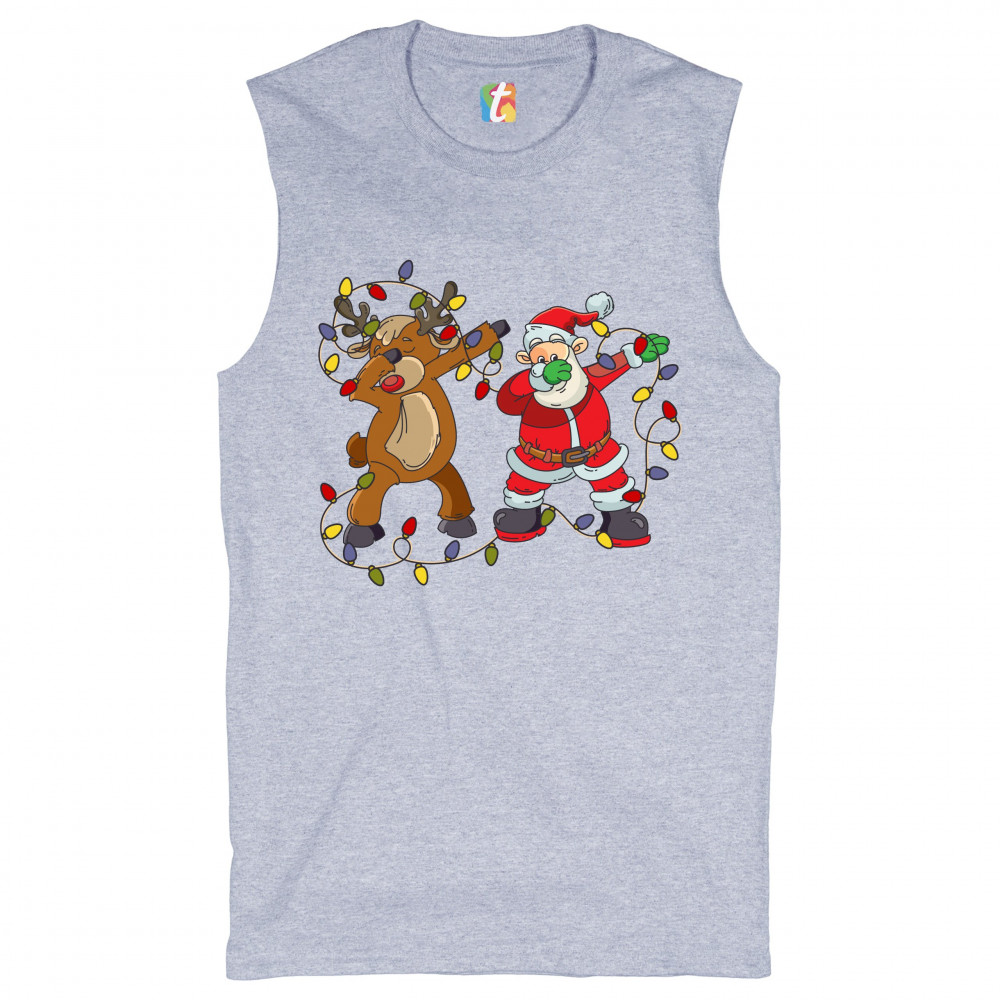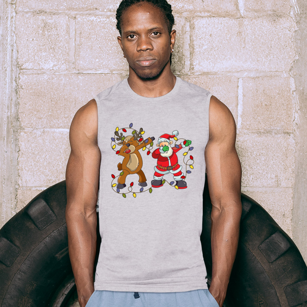 SANTA CLAUS AND RUDOLPH DAB DANCE muscle shirt merry christmas xmas men's gray