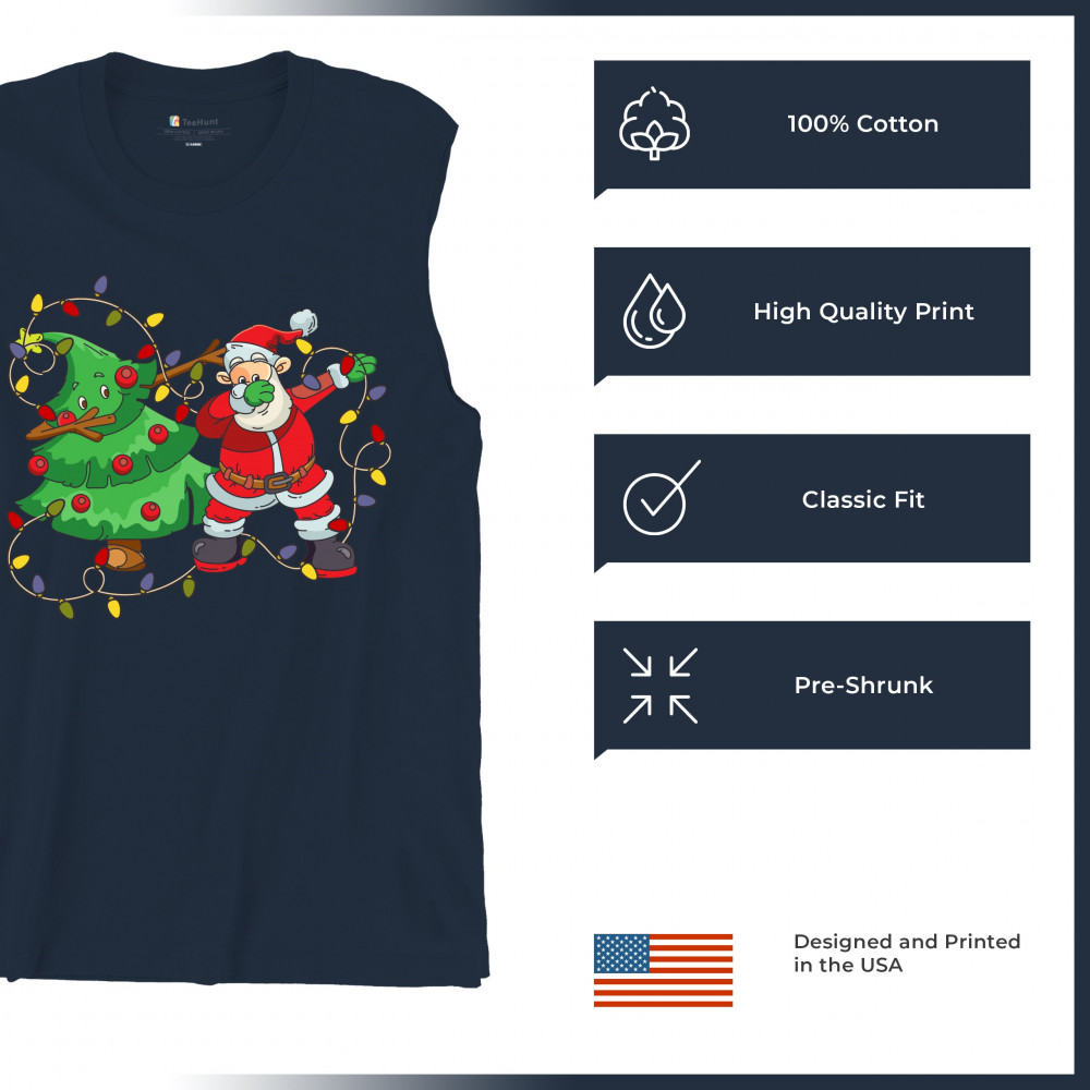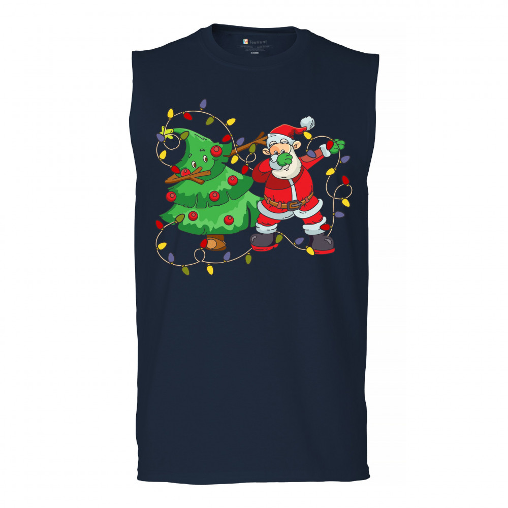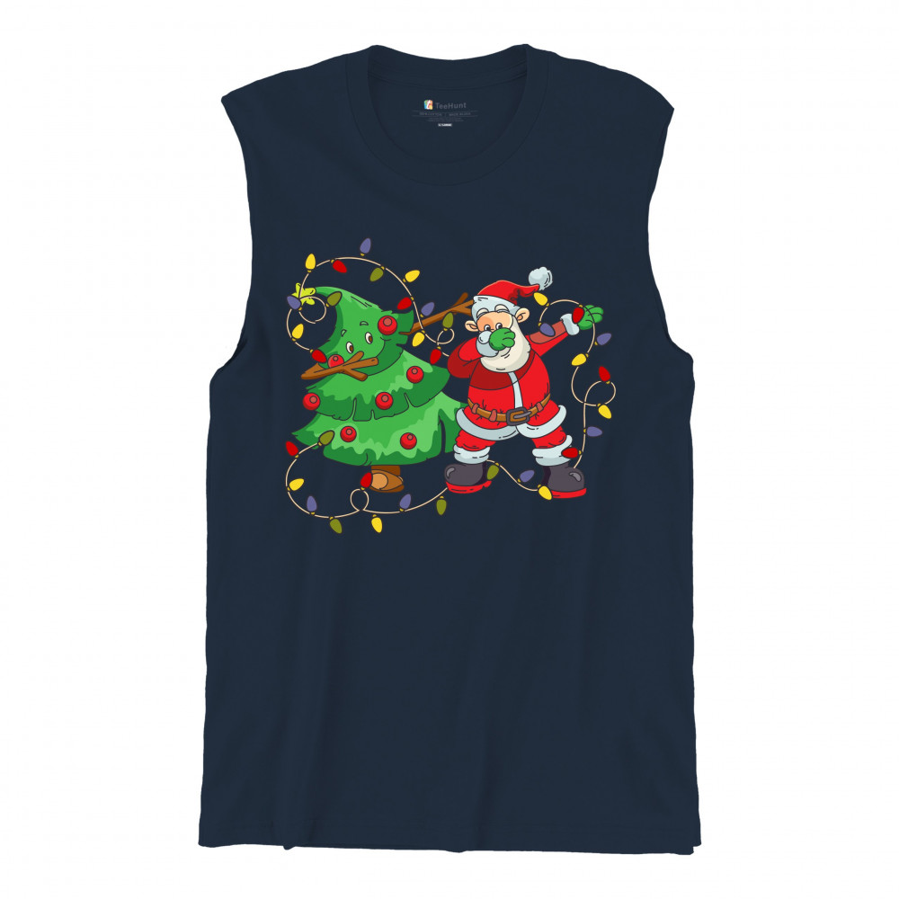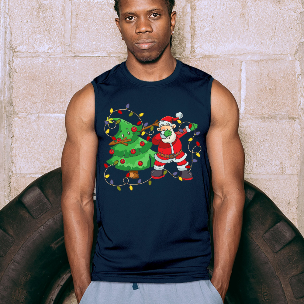 SANTA CLAUS DABBING WITH CHRISTMAS TREE muscle shirt merry and bright men's navy blue