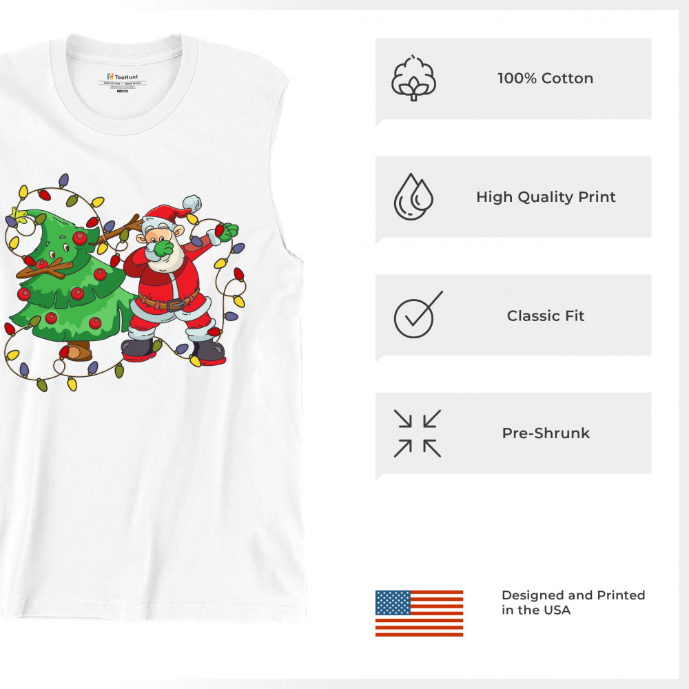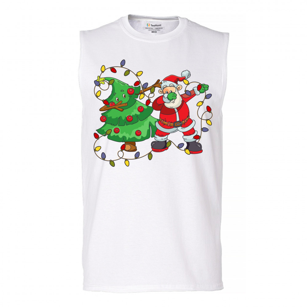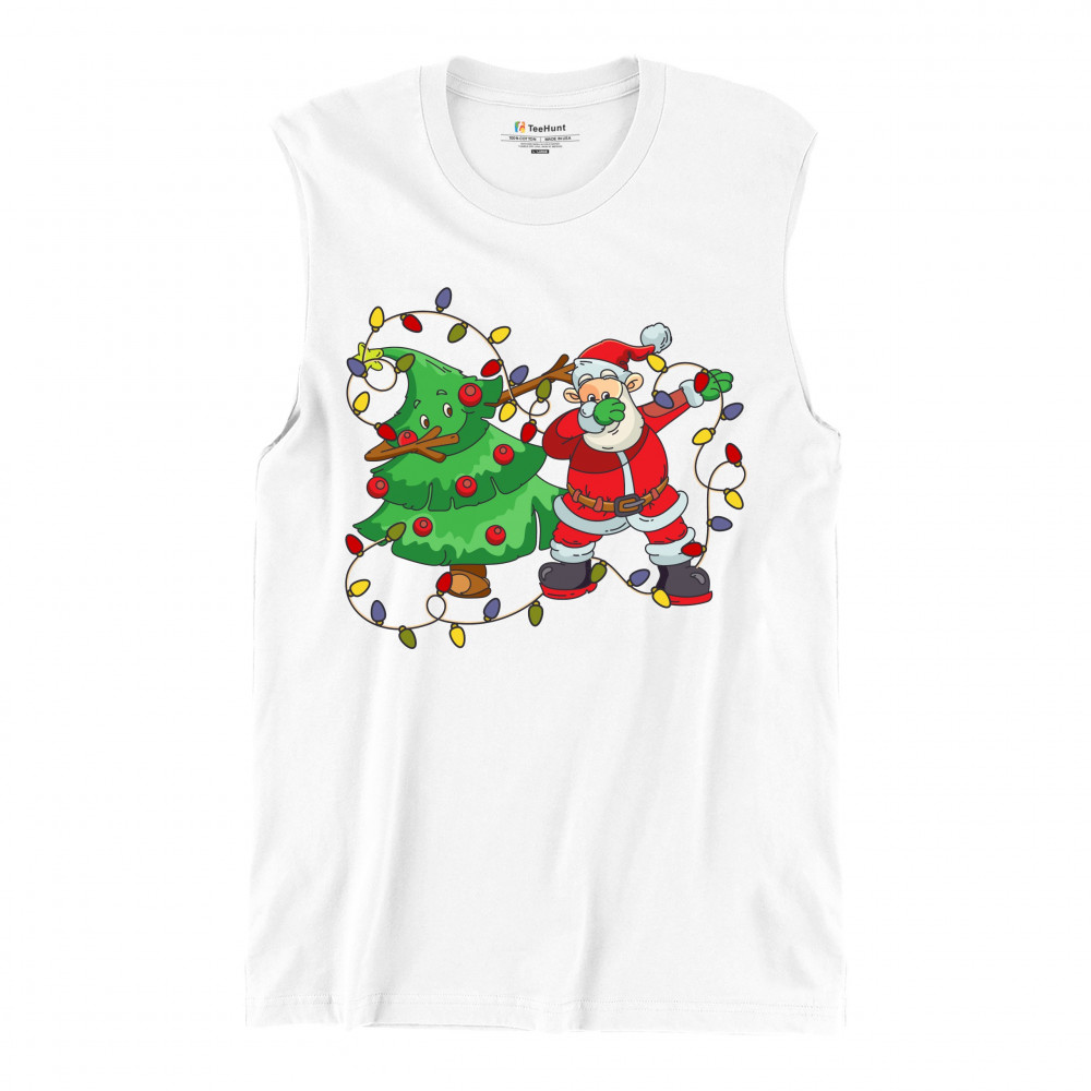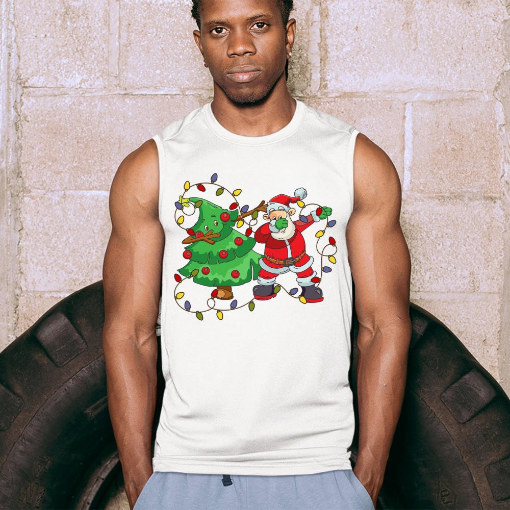 SANTA CLAUS DABBING WITH CHRISTMAS TREE muscle shirt merry and bright men's white