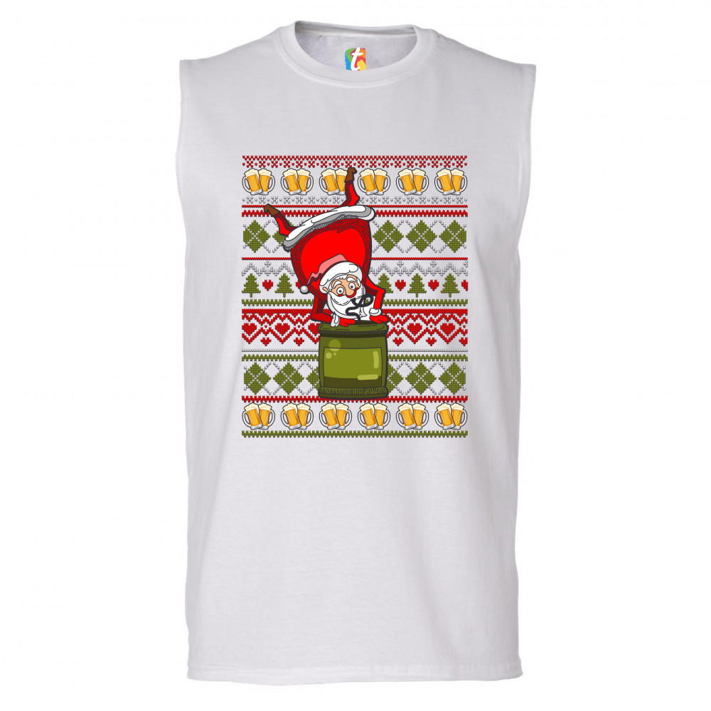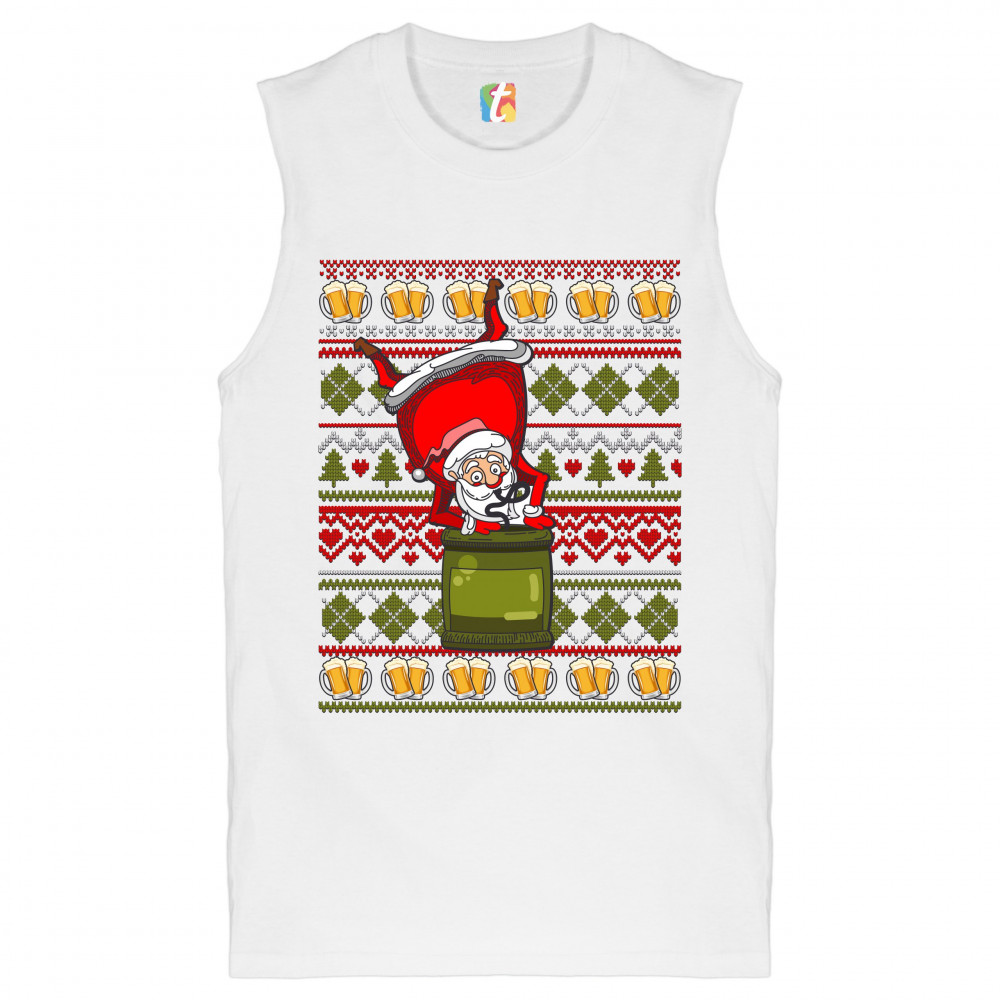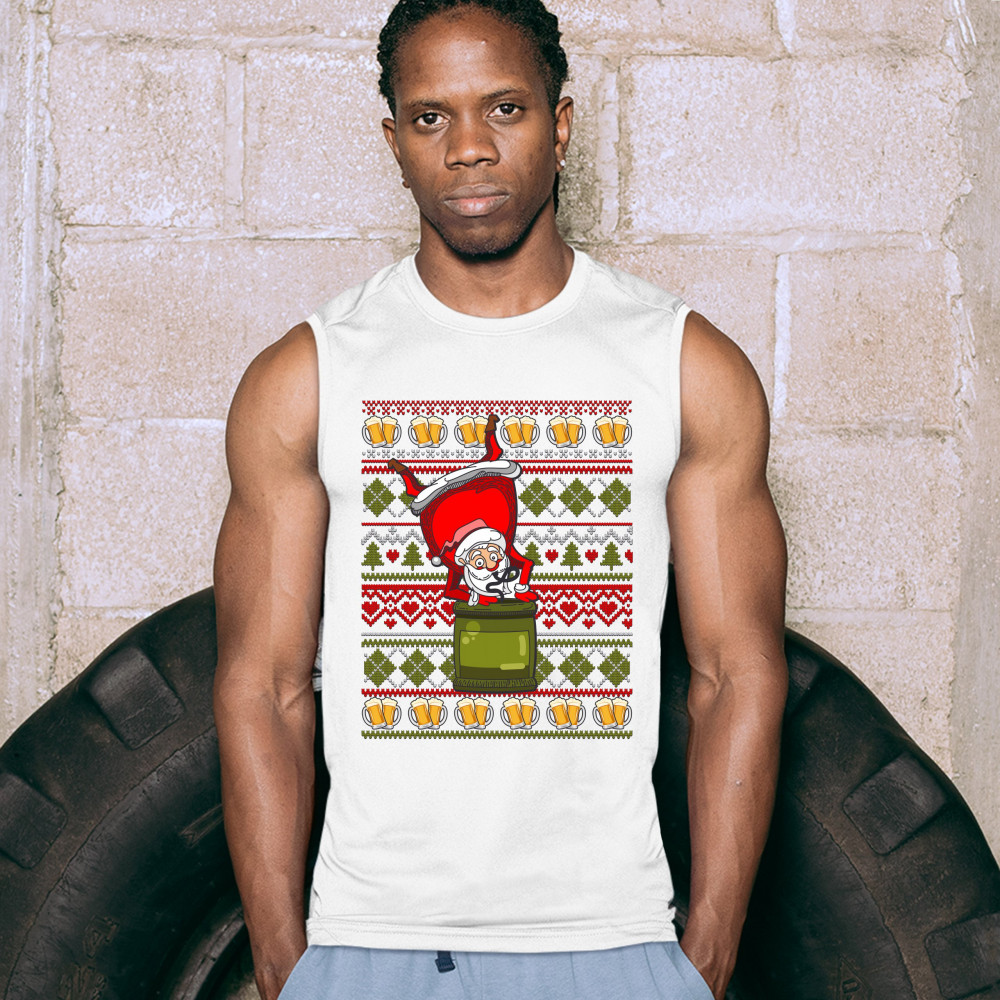 SANTA CLAUS KEG STAND muscle shirt christmas ugly sweater beer drinking men's white