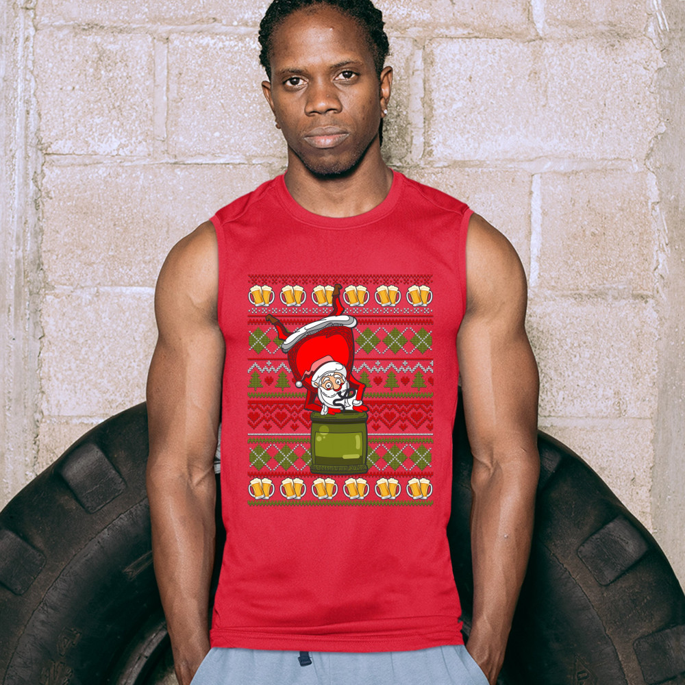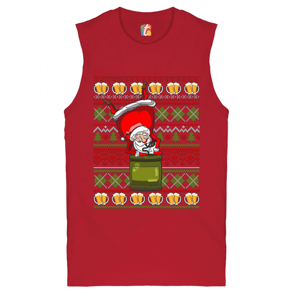 SANTA CLAUS KEG STAND muscle shirt christmas ugly sweater beer drinking men's red