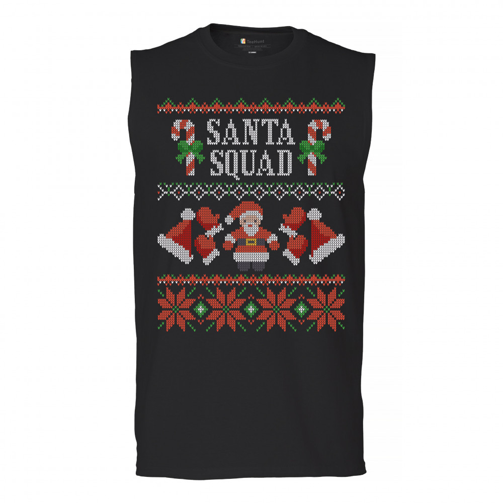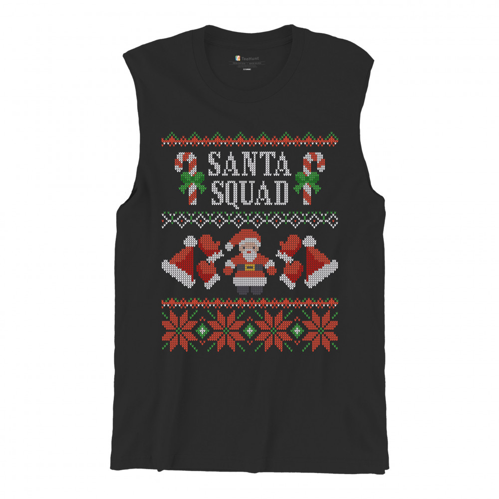 SANTA SQUAD muscle shirt cute ugly sweater merry and bright christmas men's black