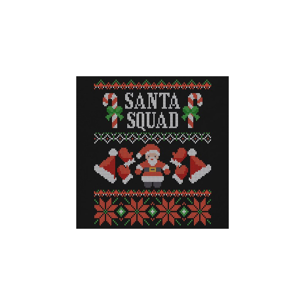 A cute print saying: "Santa Squad" and featuring 2 candy canes, 2 Christmas hats and 4 gloves. The print is decorated as an ugly sweater. Amazing choice to make people smile and spread positive vibes on Christmas Eve.
