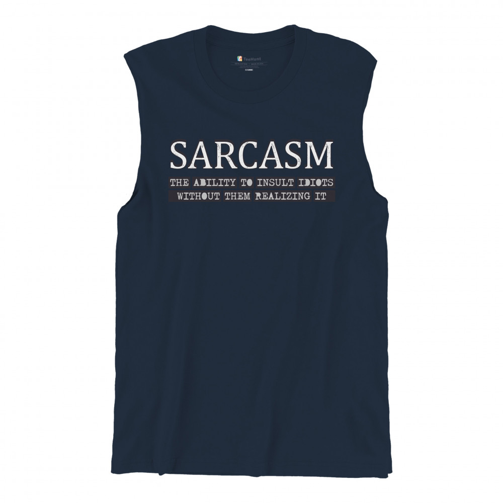 SARCASM muscle shirt ability to insult idiots without them realizing men's navy blue