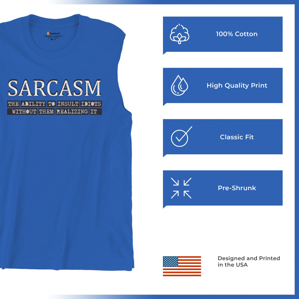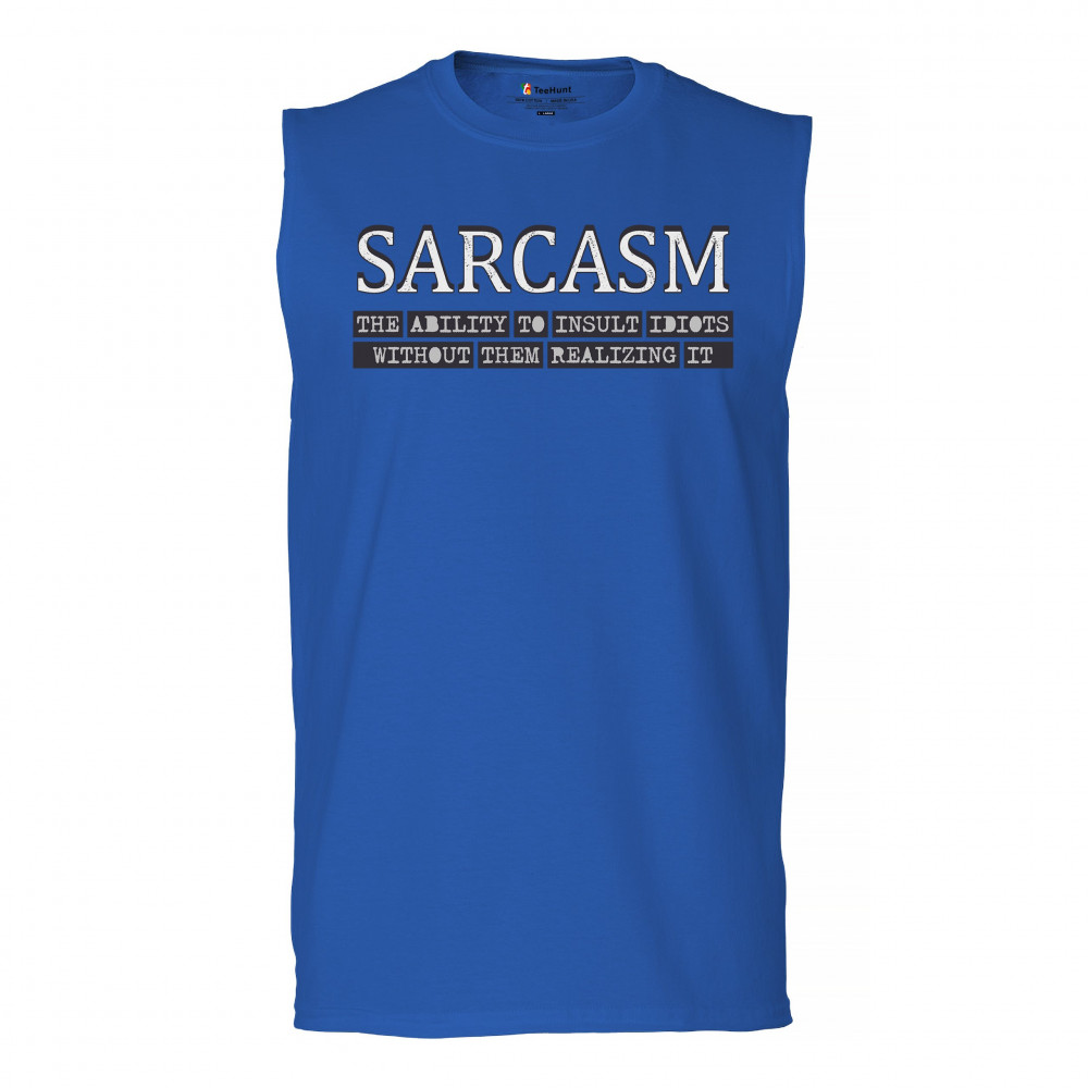 SARCASM muscle shirt ability to insult idiots without them realizing men's royal blue